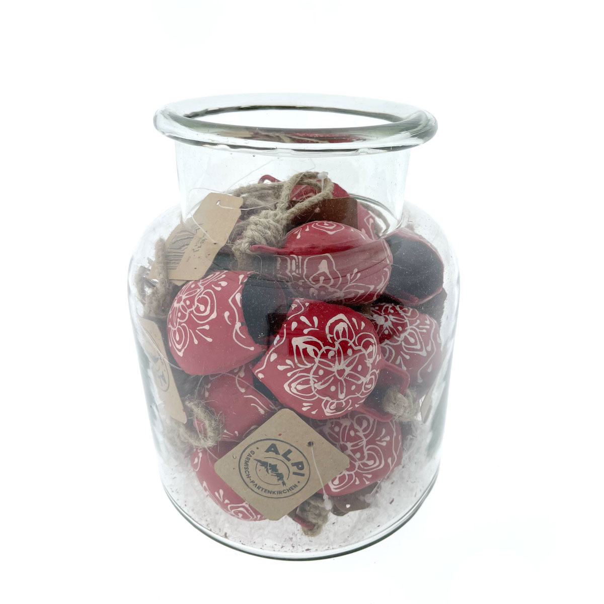 Deko Glocke rot mit Klang, Kuhglocke mit Blumenmuster rot-weiß, 5cm