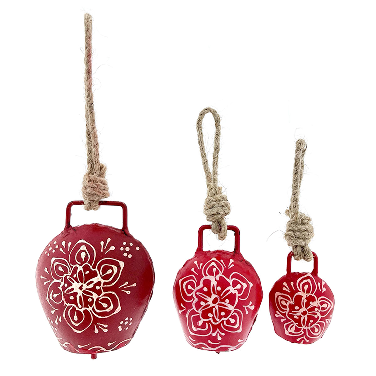 Produktinformationen "Deko Glocke rot mit Klang, Kuhglocke mit Blumenmuster rot-weiß, 9cm"