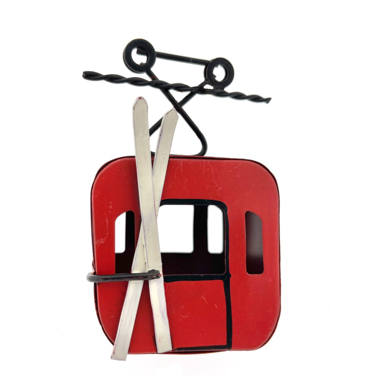 Herstellerinformationen zu "Deko Gondel rot mit weißen Ski, Seilbahn, Skigondel aus Metall, 7x5x11cm, Hänger"