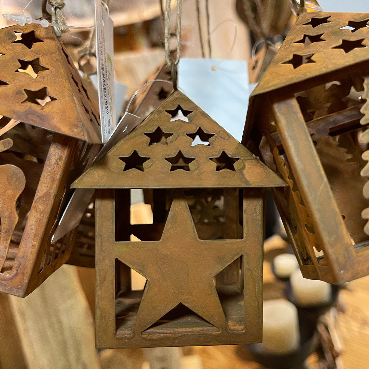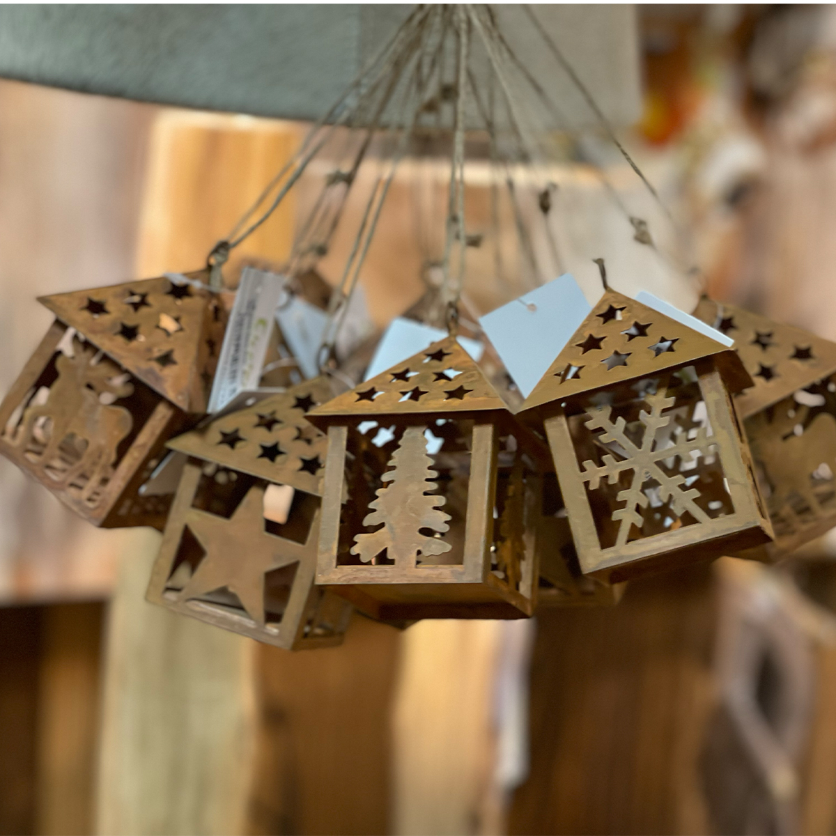 Jedes Häuschen ist mit einer Juteschnur versehen und lässt sich ganz einfach aufhängen. Die Häuschen sind nicht zu öffnen und bestehen aus stabilem Metall im charakteristischen Edelrost-Look, der jedem Stück seine ganz eigene, charmante Note verleiht.