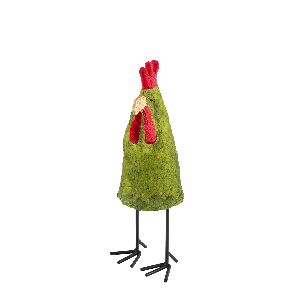 Produktinformationen "Deko Hahn auf Metallfüße, grüner schlanker Hahn aus Pappmache, 25cm"