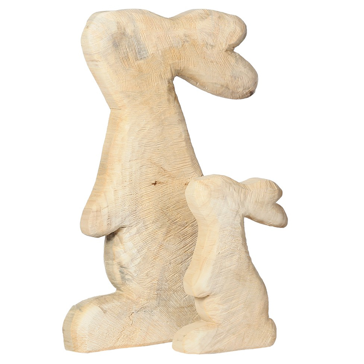 Die natürliche Maserung, kleine Unebenheiten und feine Risse sind bewusst sichtbar und machen jeden Hasen zu einem echten Unikat.