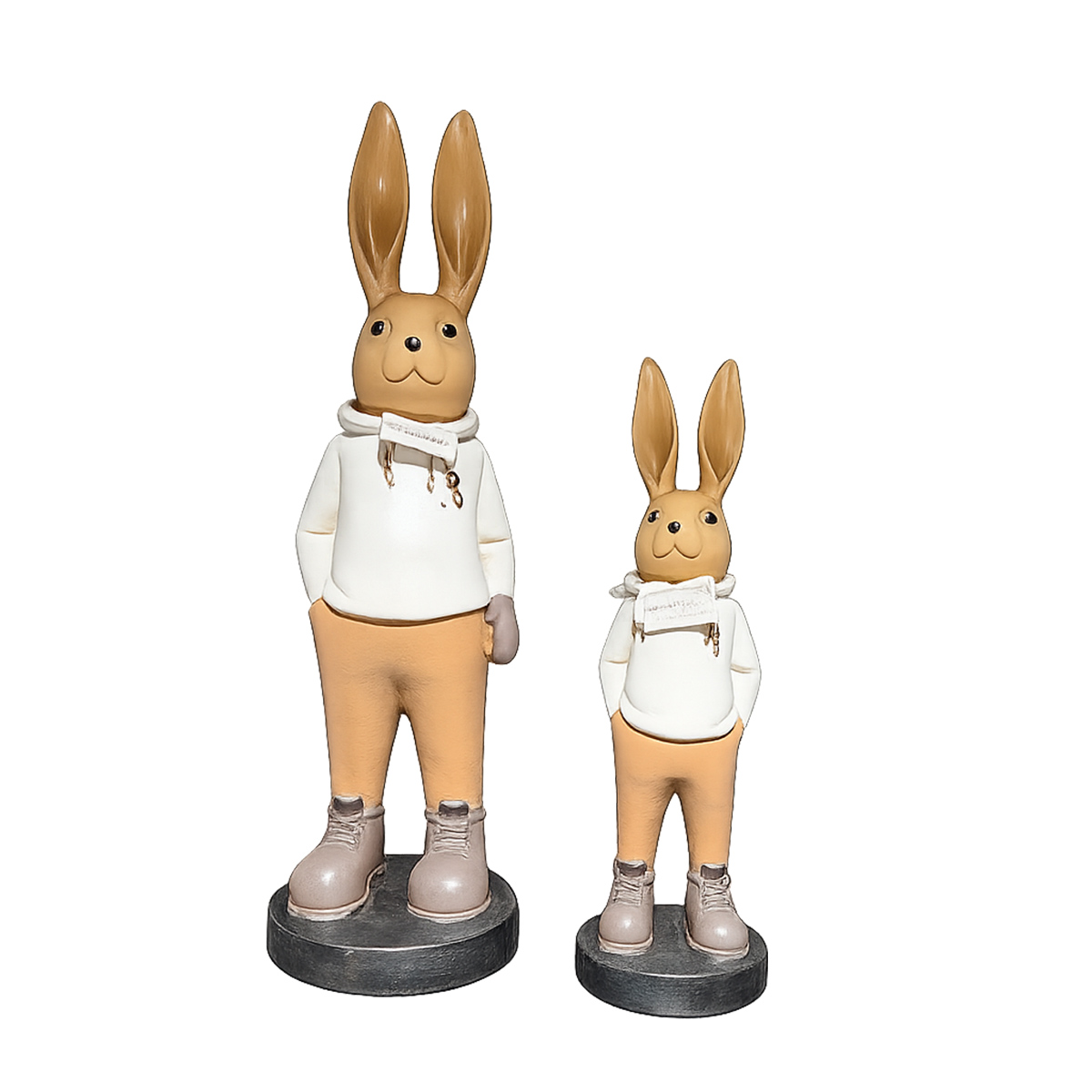 Deko Hase mit Hoody, cooler Osterhase aus Polyresin, 42cm
