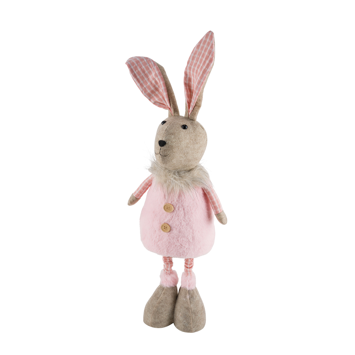 Deko Hase mit Teleskopbeine, Stoffhase mit Plüschkörper rosa, 86cm