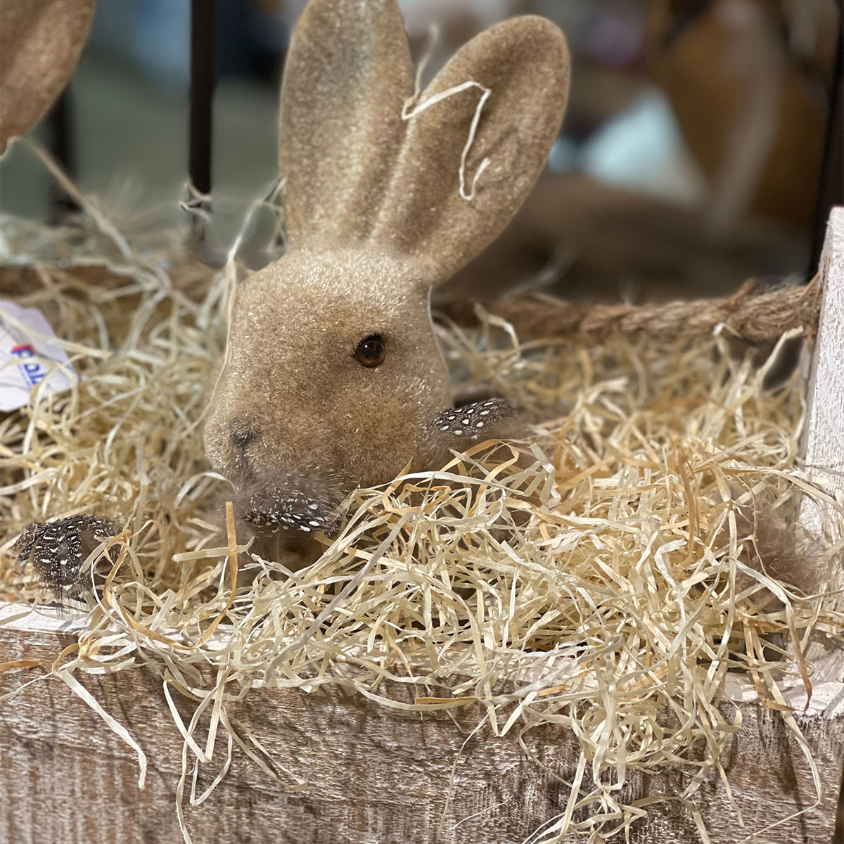 Herstellerinformationen zu "Deko Hase sitzend, Osterhase braun beflockt, 14x23cm, Kunststoff"