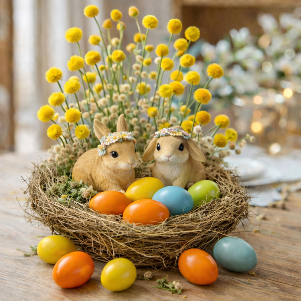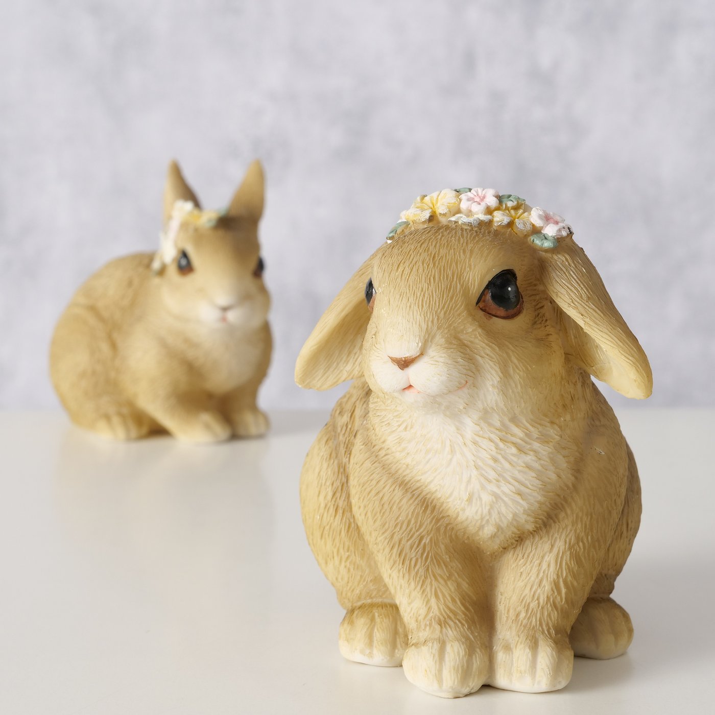 Mit seinem niedlichen Blick und dem zarten Blumenkranz auf dem Kopf bringt er sofort gute Laune und frühlingshafte Osterstimmung ins Zuhause. Ein kleiner Hase, der leise „Hallo Frühling“ sagt und dabei jedes Osternest ein Stückchen gemütlicher macht.