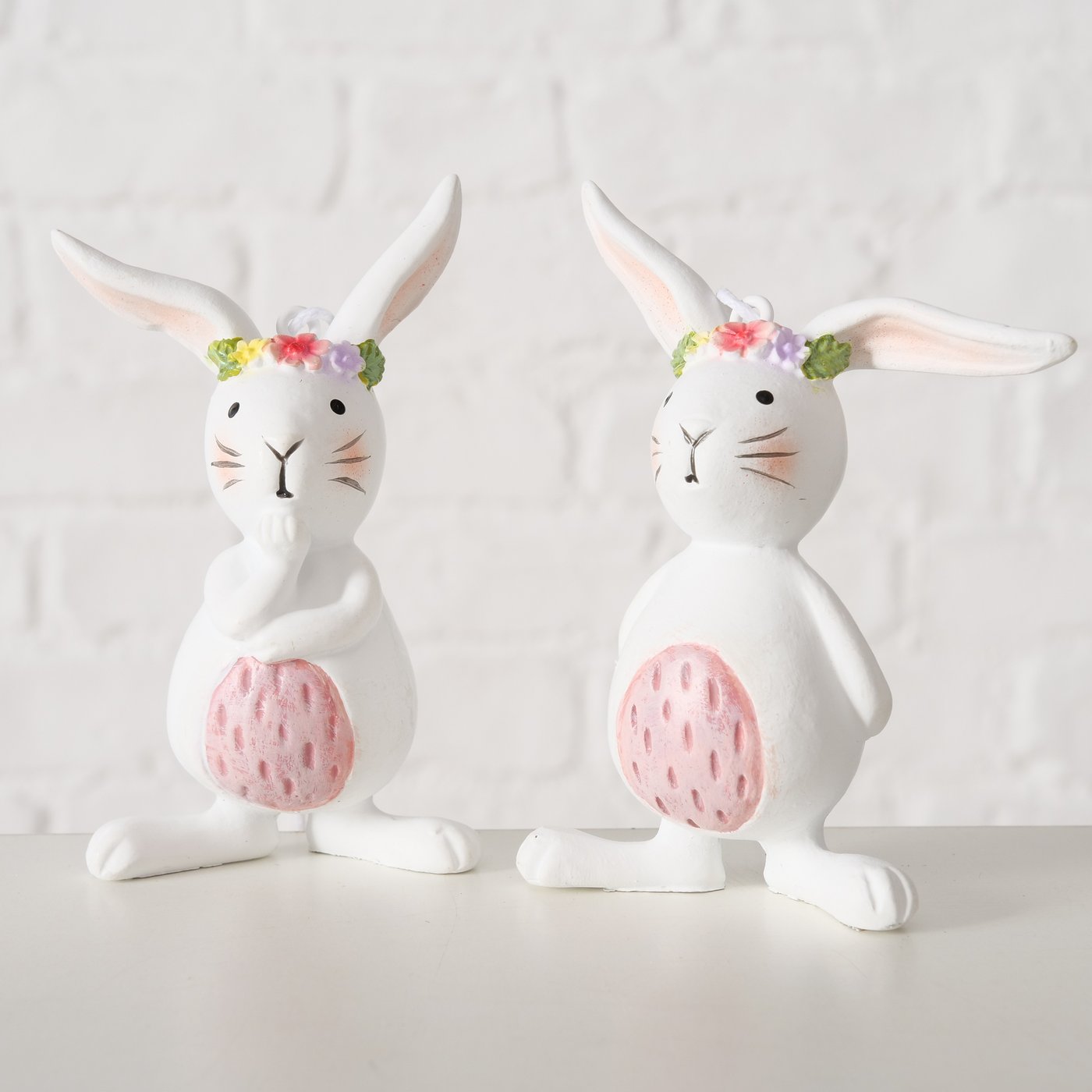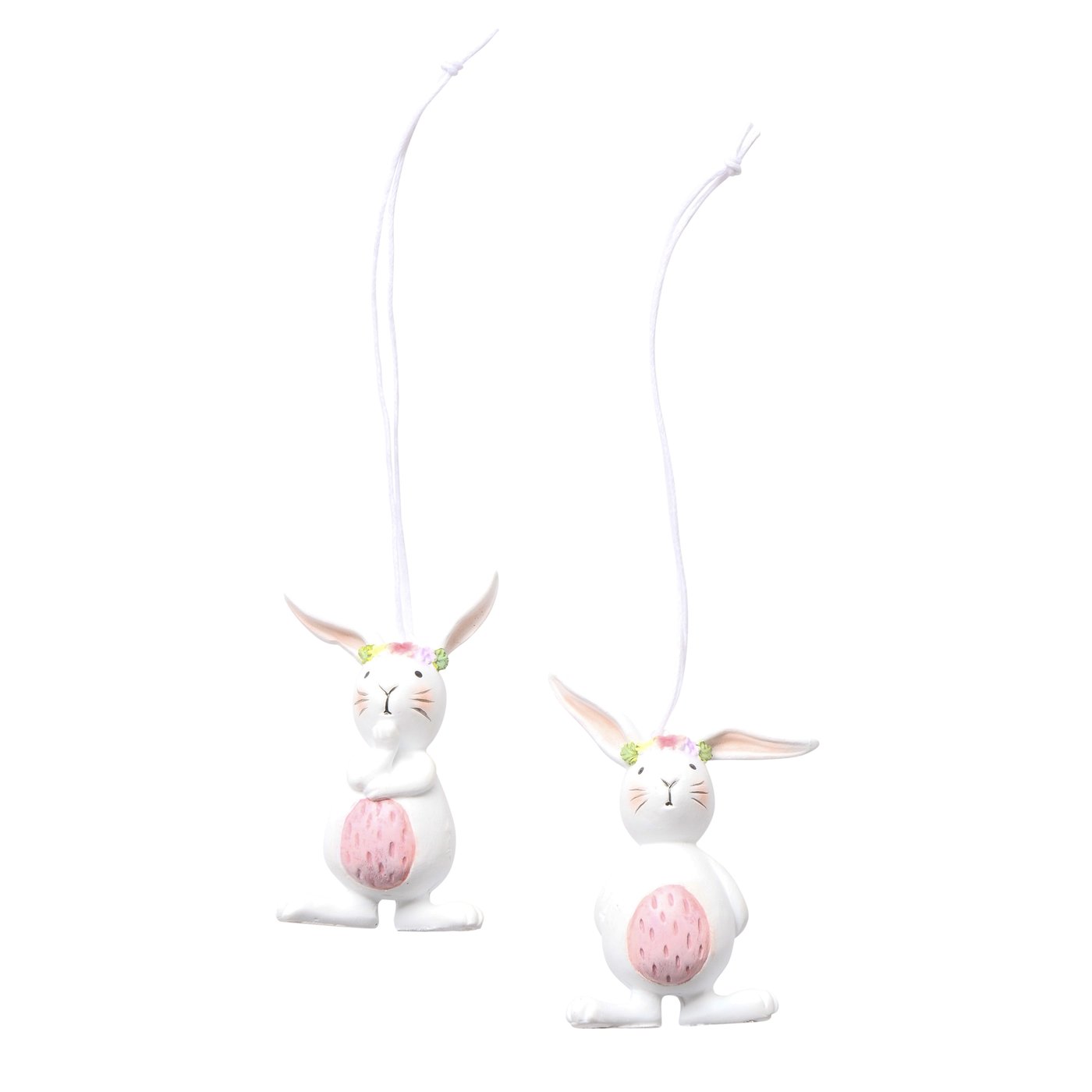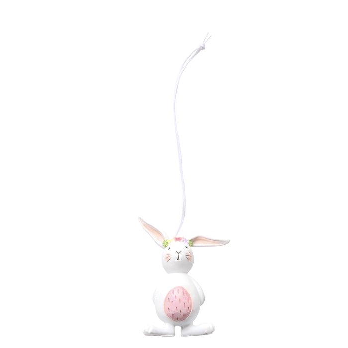 Deko Hasenhänger Easy, putziger kleiner Hasenhänger mit rosa Ei-Bauch und Blumenkranz, Boltze Home C