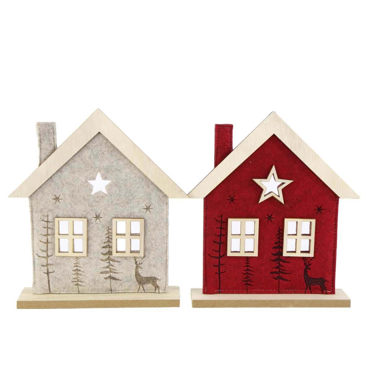 Herstellerinformationen zu "Deko Haus Hirsch, Filzhaus mit Bäume und Hirsch, dunkelrot, 18x21cm, Aufsteller"