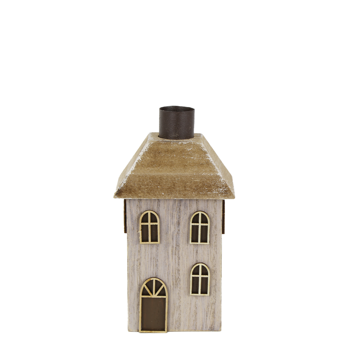 Deko Haus, Weihnachtshaus, Holzhaus mit Kamin, grau-natur, 8x6x15cm