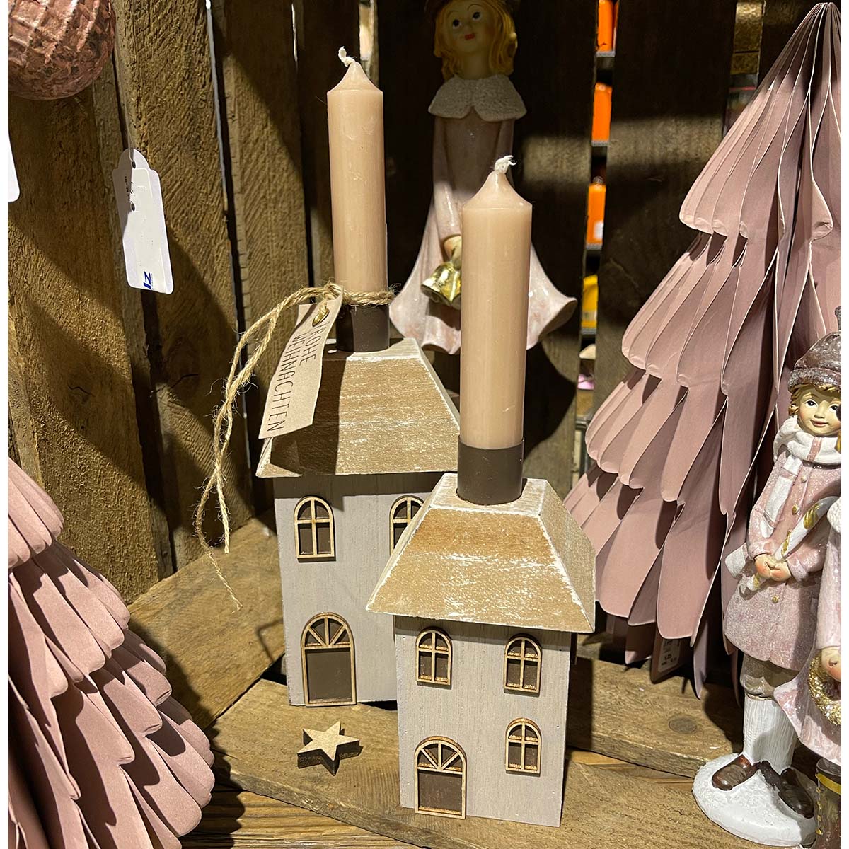 Herstellerinformationen zu "Deko Haus, Weihnachtshaus, Holzhaus mit Kamin, grau-natur, 9x7x19cm"