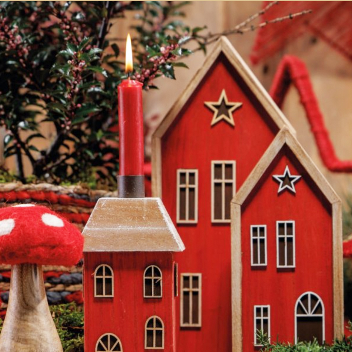 Herstellerinformationen zu "Deko Haus, Weihnachtshaus, Holzhaus mit Stern, rot-natur, 13x31cm, Aufsteller"