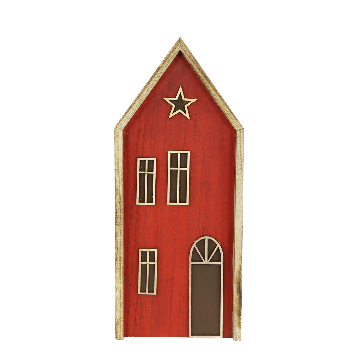 Produktinformationen "Deko Haus, Weihnachtshaus, Holzhaus mit Stern, rot-natur, 13x31cm, Aufsteller"