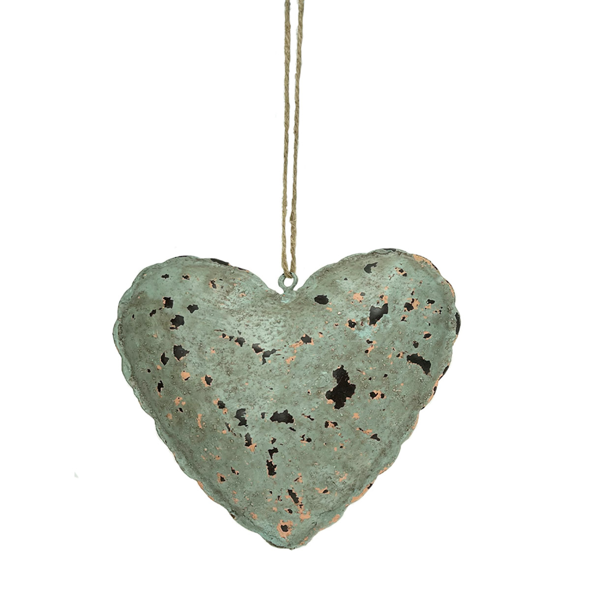 Produktinformationen "Deko Herz Antik, Metallherz grün used look gefüllt, 12x14cm, Hänger"