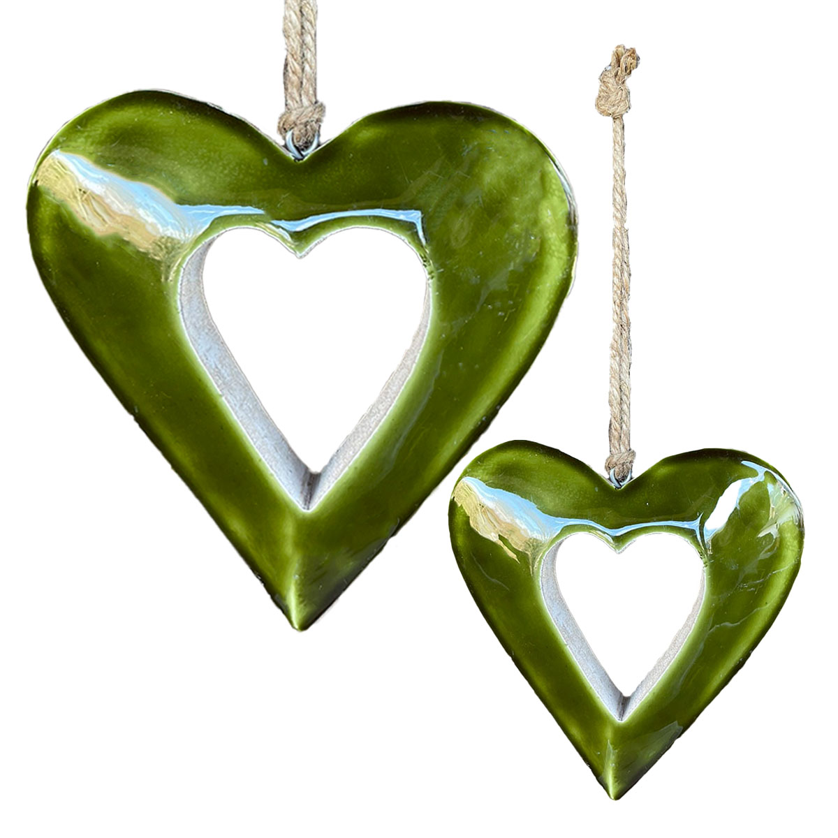 Deko Herz grün, Holzherz mit Lacküberzug grün glänzend, 8x8cm, Hänger