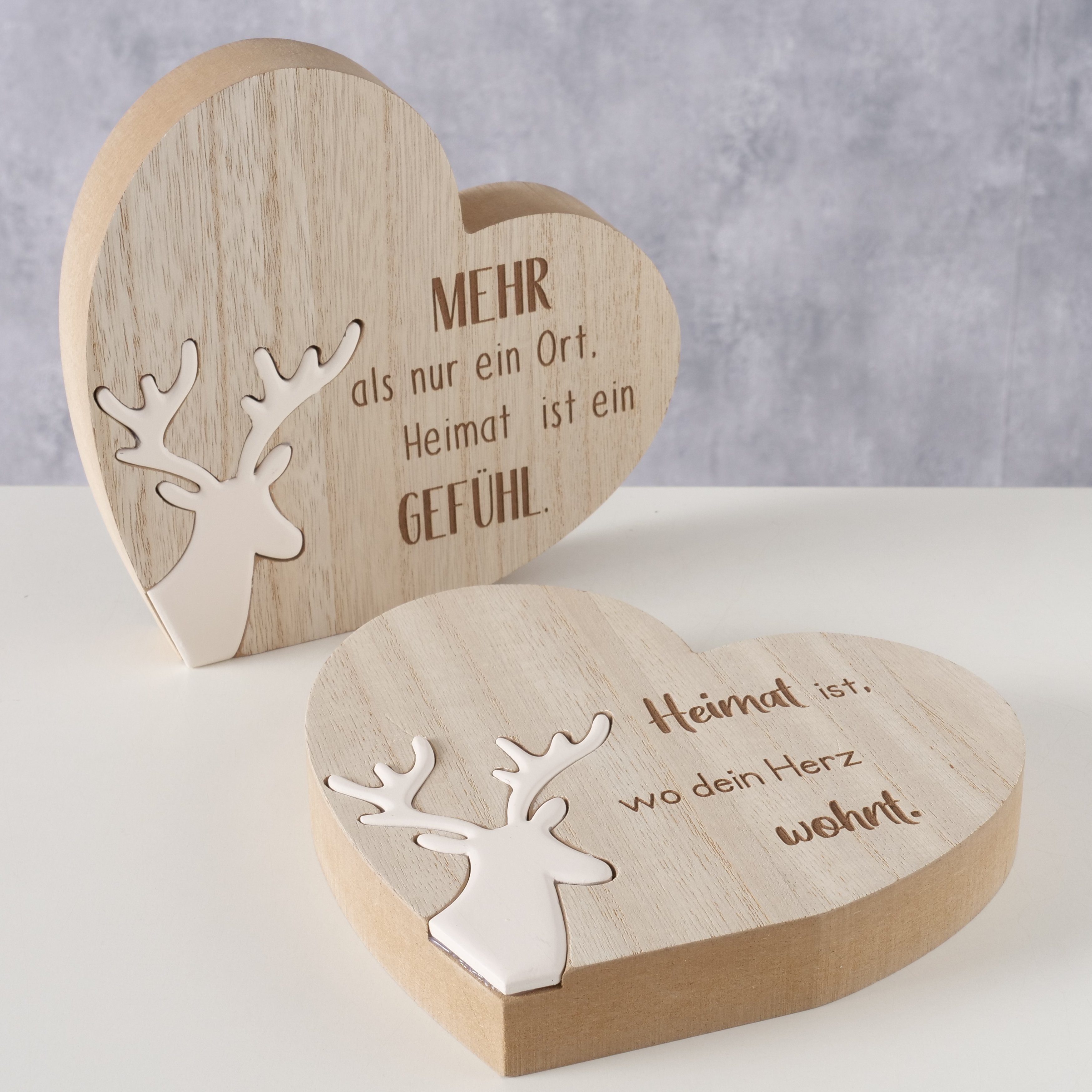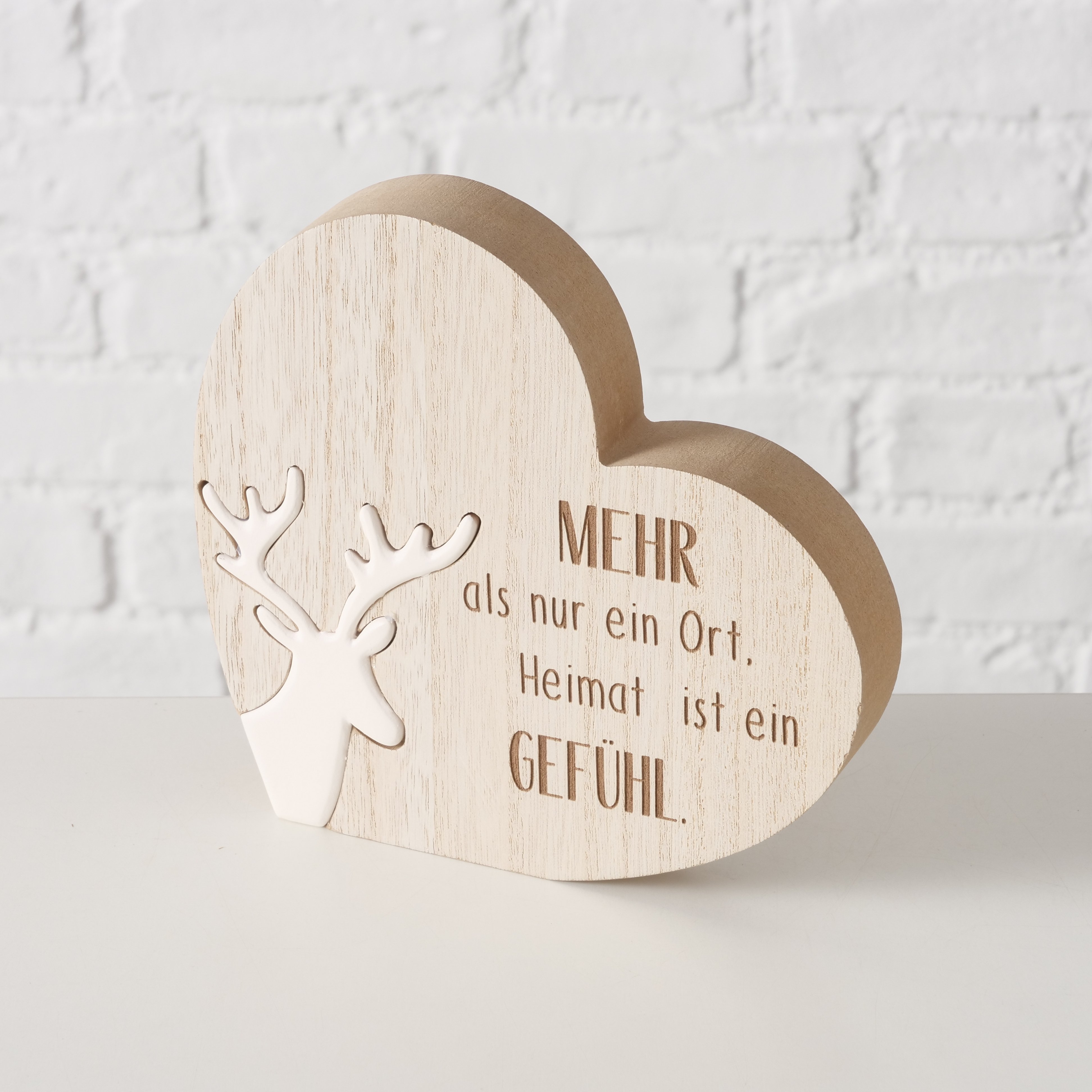 Deko Herz Hirsch, Holzherz mit Hirsch und Spruch: Mehr als nur ein Ort..., 16x15cm, Boltze Home Collections