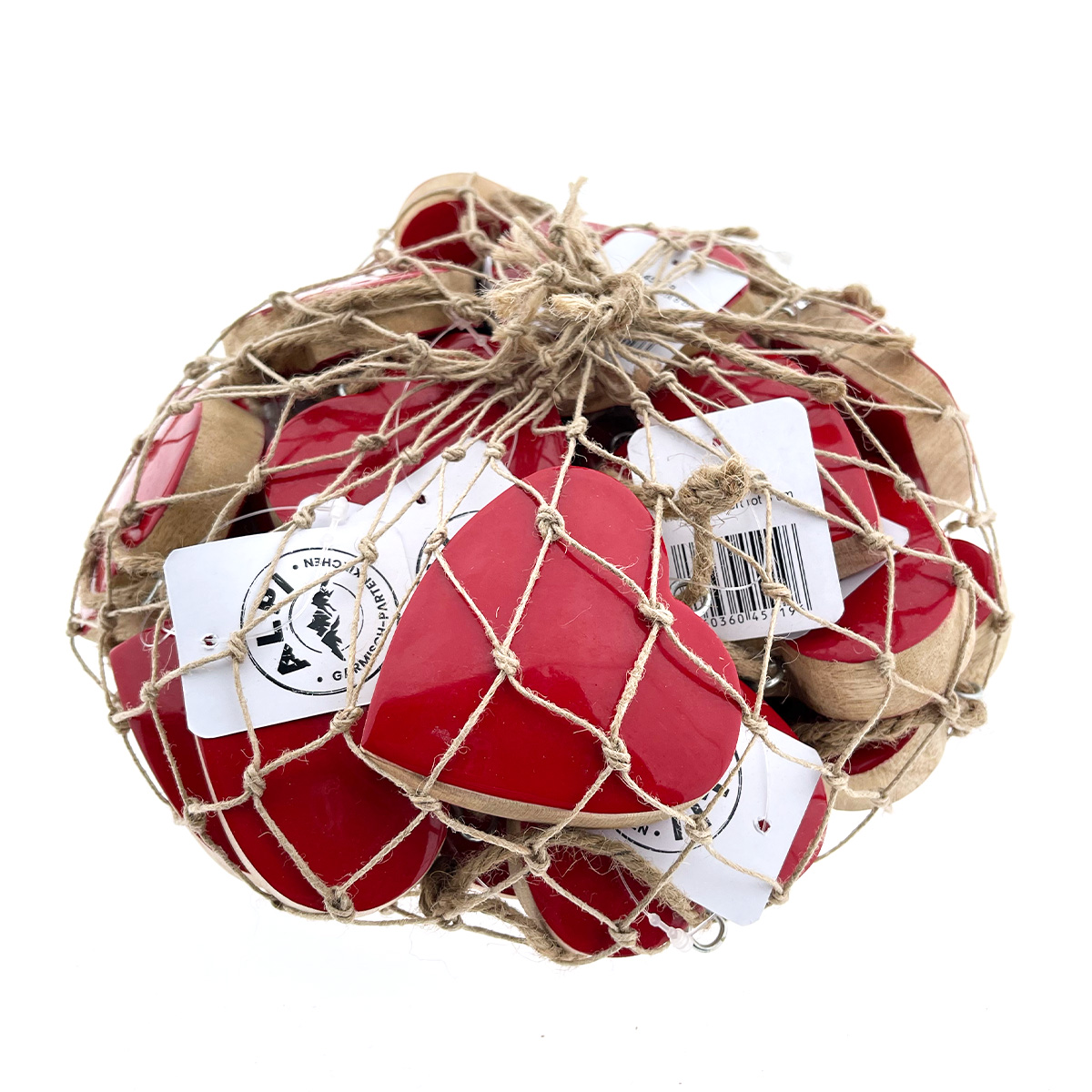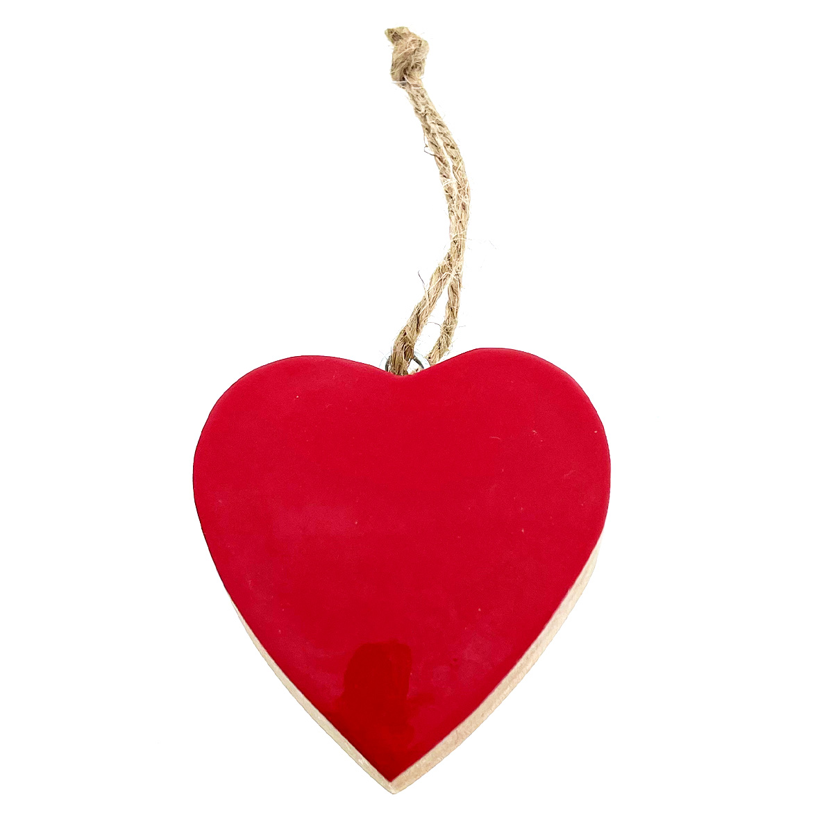 Deko Herz, Holzherz mit rotem Lacküberzug, emailiert, 8x7cm, Hänger