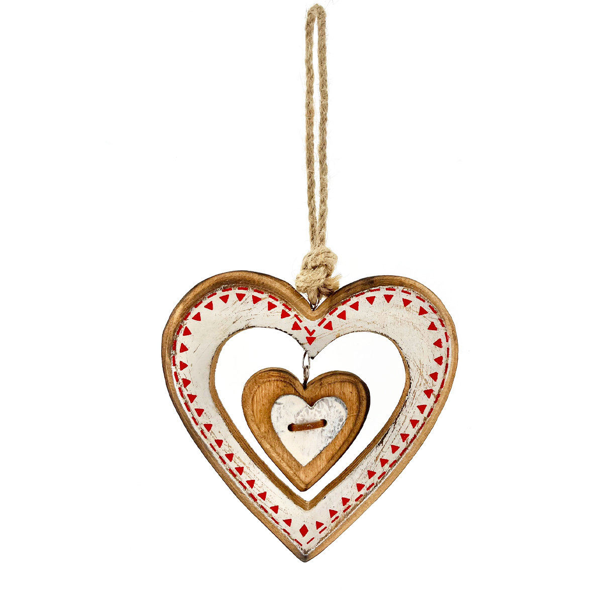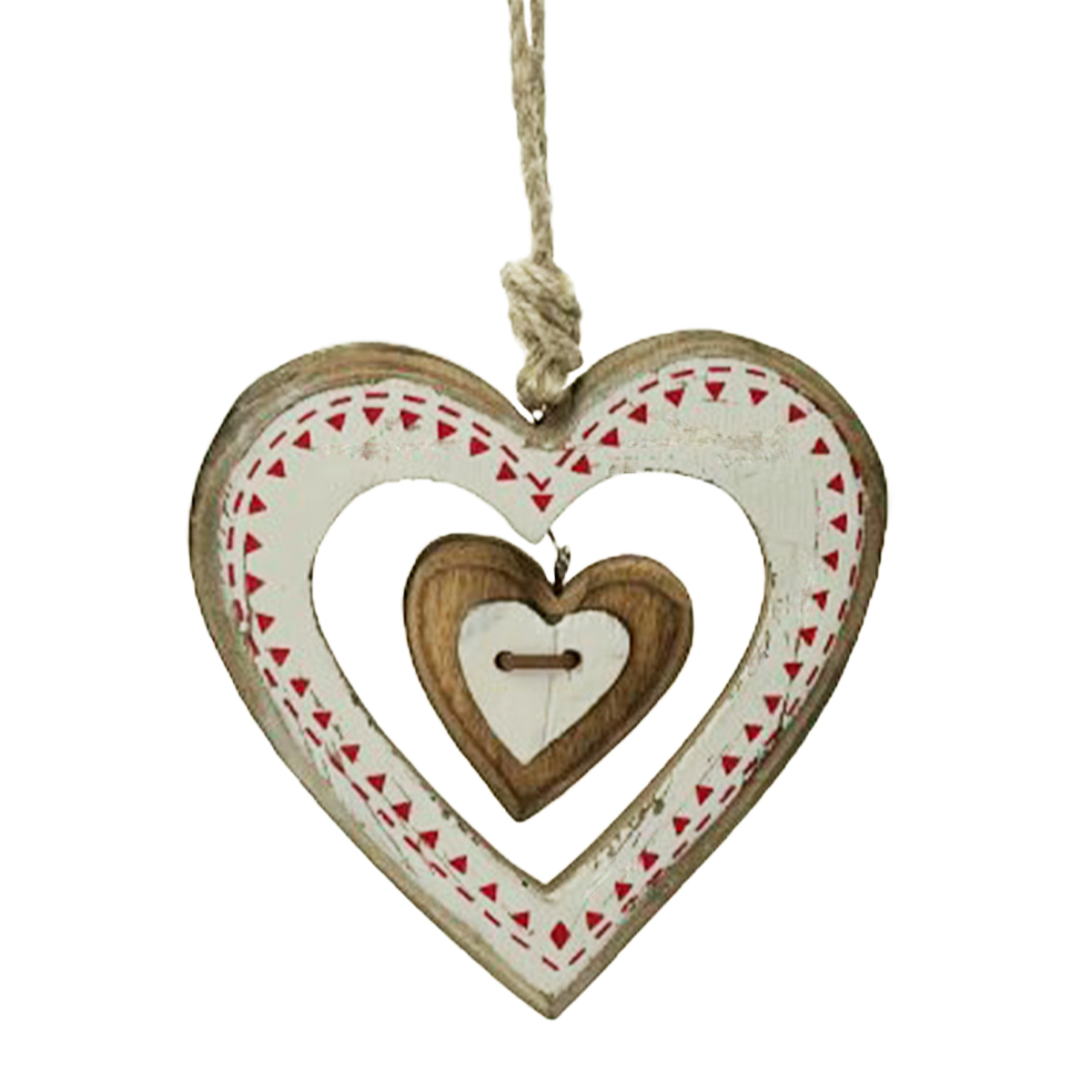Deko Herz Landhaus, Herzhänger Herz im Herz, weiß-rot used look, 12cm