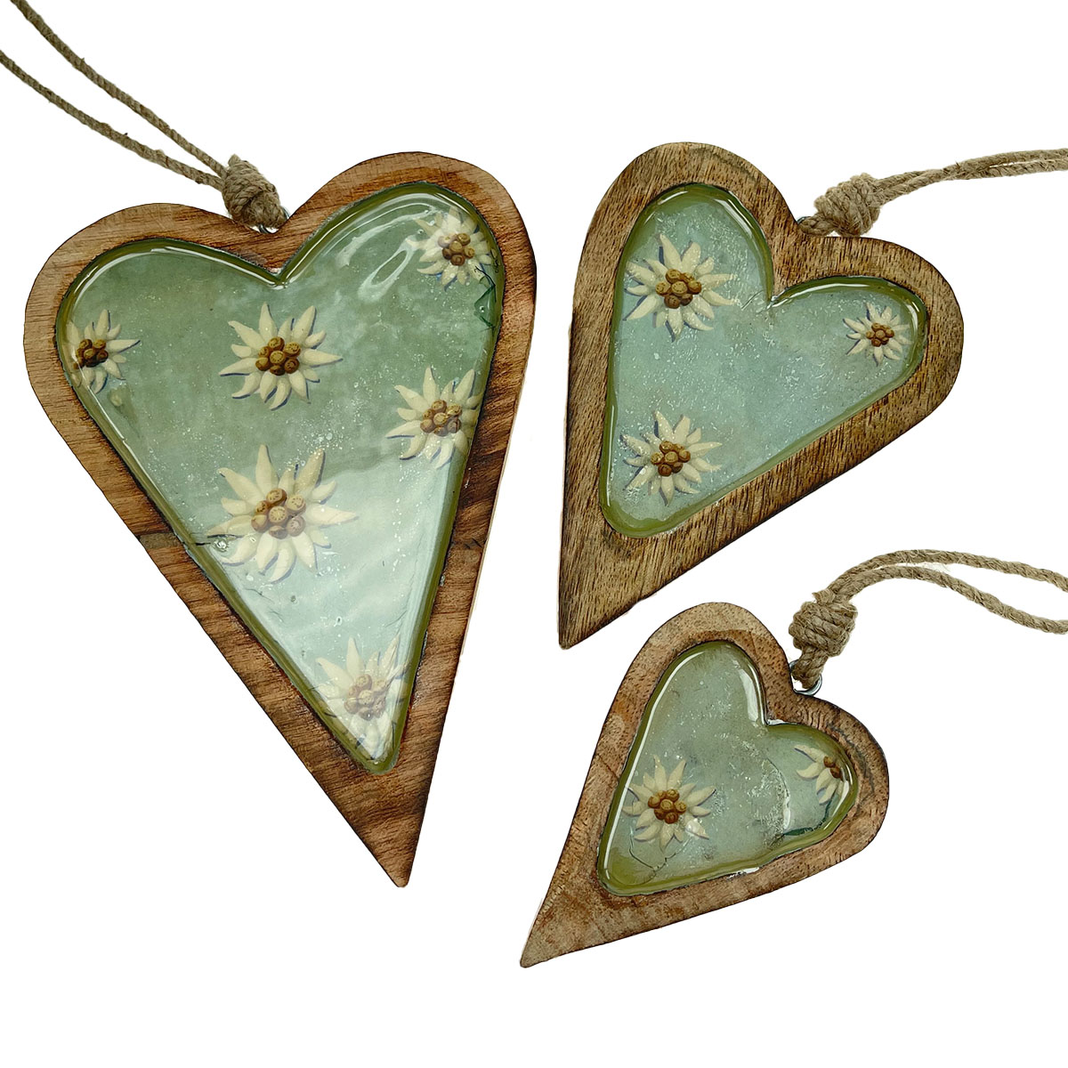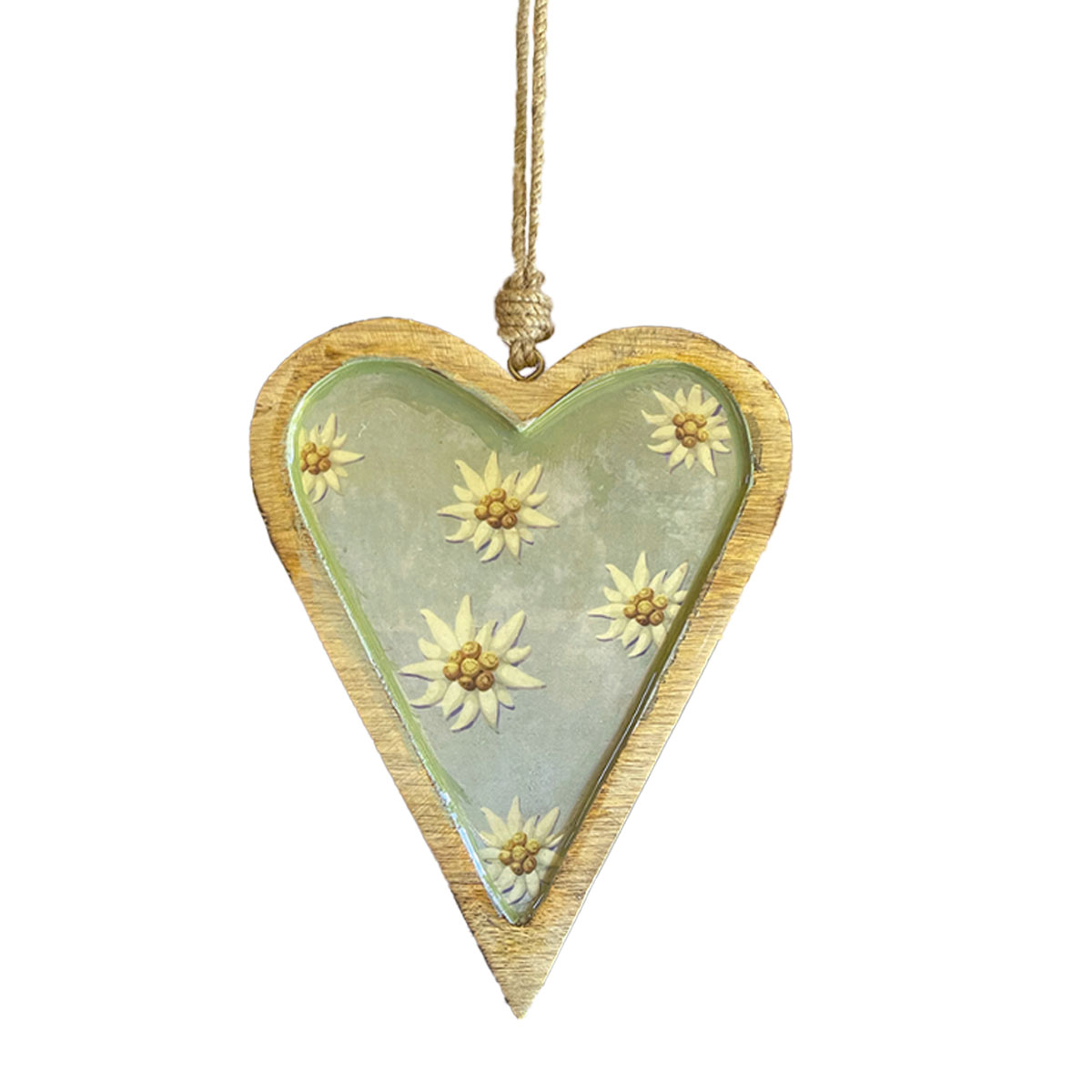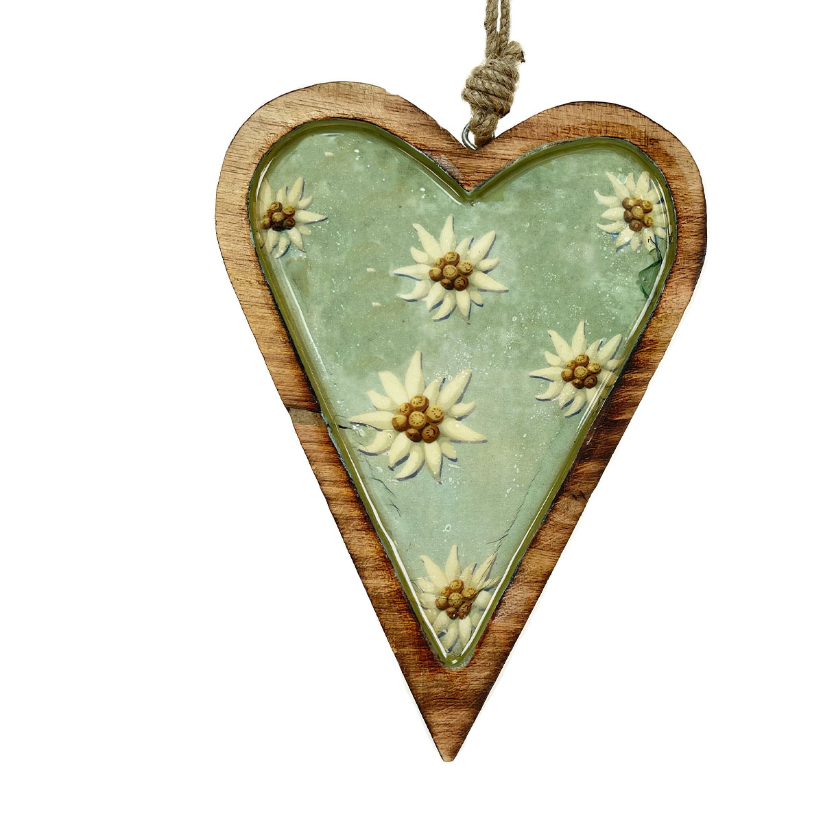 Produktinformationen "Deko Herz Landhaus, Holzherz blaugrau mit Edelweiß, Emailleoptik, 14x19cm, Hänger"