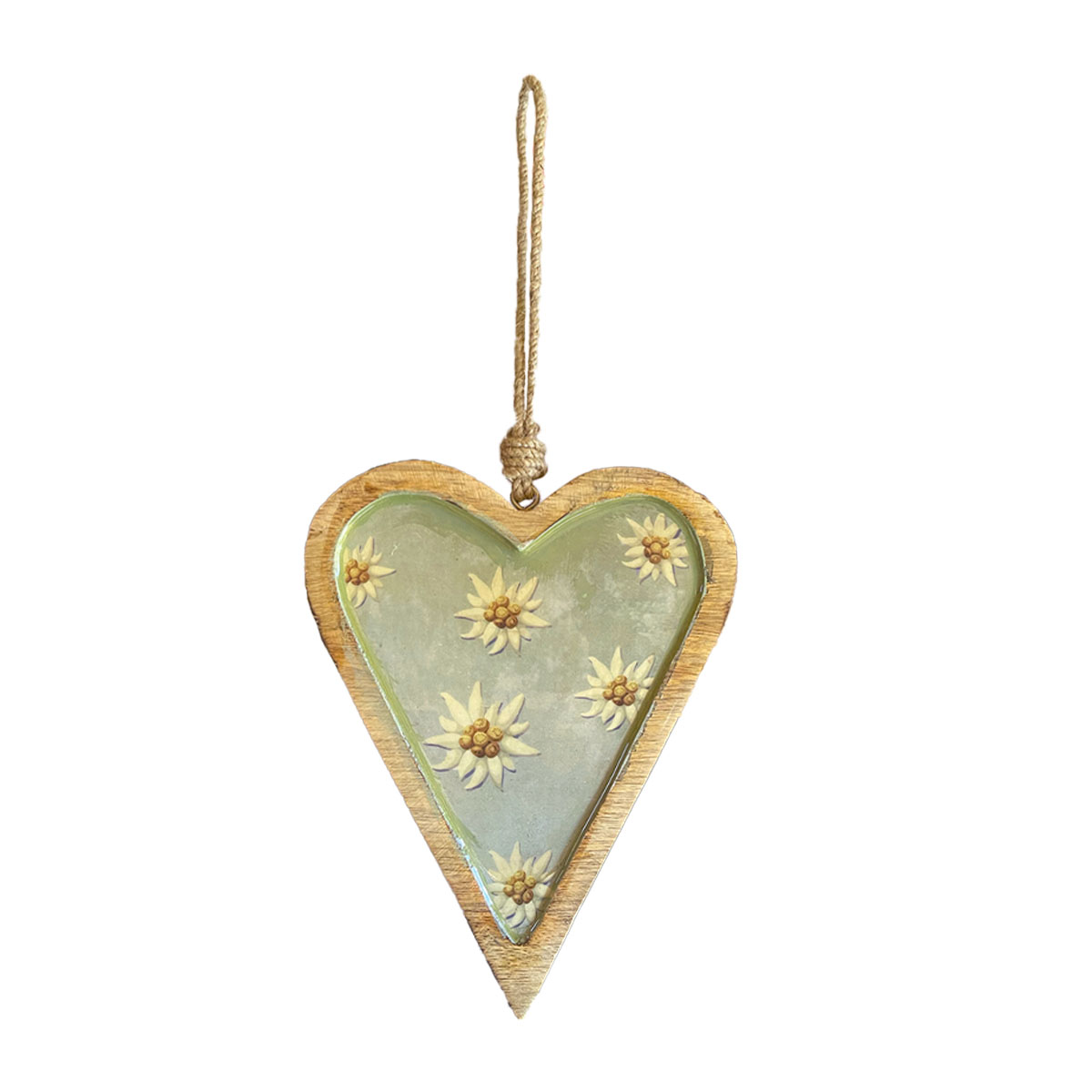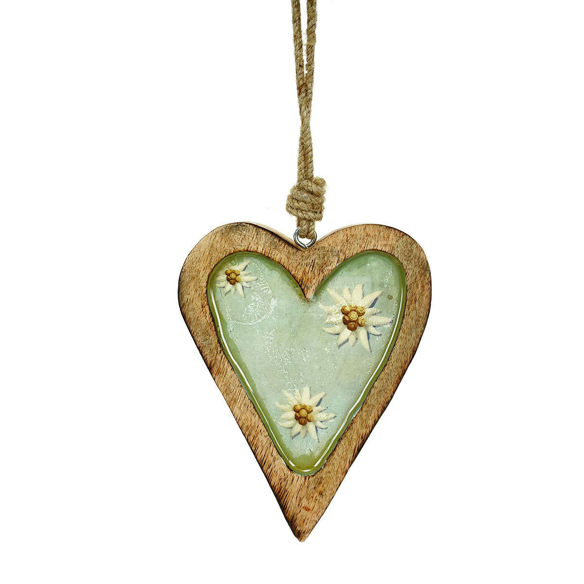 Deko Herz Landhaus, Holzherz blaugrau mit Edelweiß, Emailleoptik, 7x10cm, Hänger