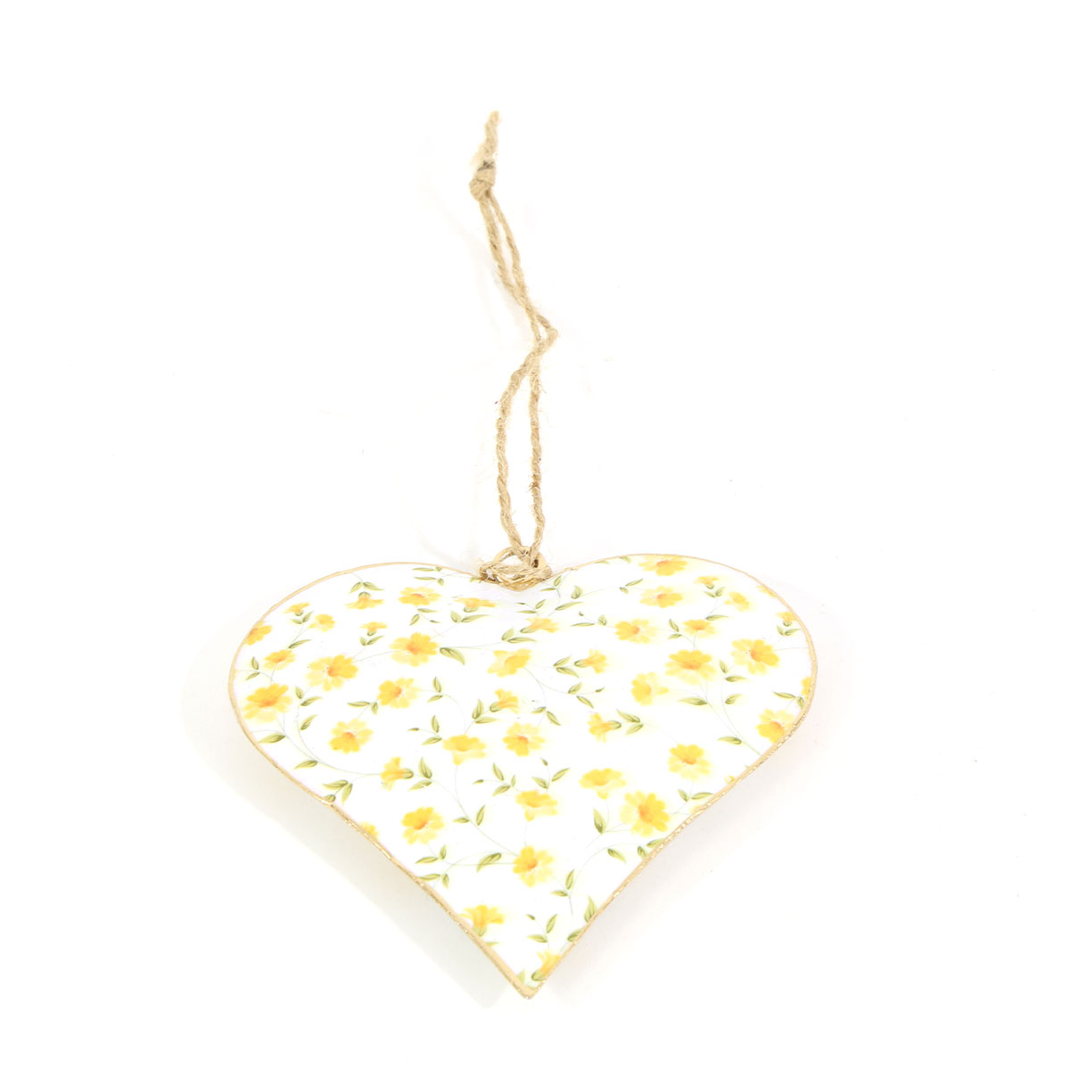 Produktinformationen "Deko Herz mit Blumen, Metallherz mit Blumen gelb, 10cm, Hänger"