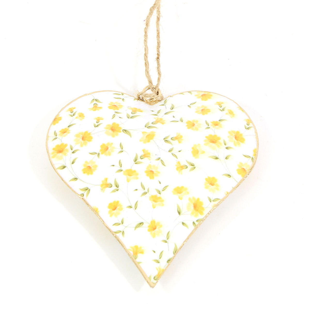 Produktinformationen "Deko Herz mit Blumen, Metallherz mit Blumen gelb, 12cm, Hänger"
