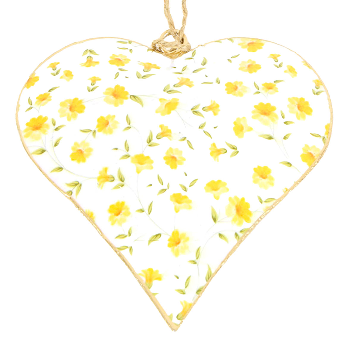 Produktinformationen "Deko Herz mit Blumen, Metallherz mit Blumen gelb, 15cm, Hänger"