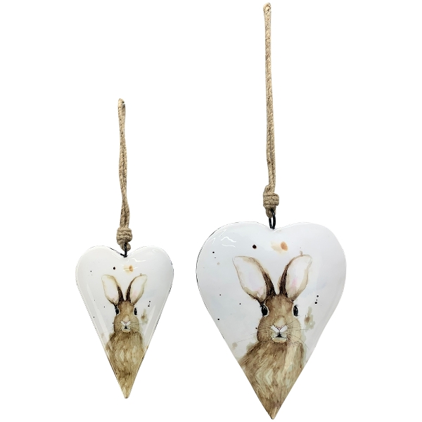Deko Herz mit Osterhase, Metallherz mit Hasenmotiv, 13x17cm