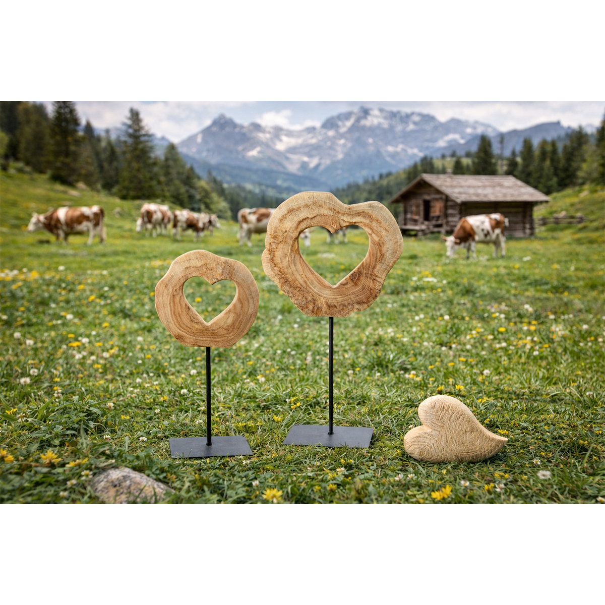 Mit einer Höhe von 55cm ist dieses Modell ein ausdrucksstarker Blickfang auf dem Boden, neben dem Kamin, im Eingangsbereich oder auf einem großen Sideboard. Besonders harmonisch wirkt es in Kombination mit den anderen Holzherzen auf Ständer aus derselben Serie oder zusammen mit weiteren Naturholz-Dekorationen im alpinen Stil. Das Herz ist in drei verschiedenen Größen erhältlich und lässt sich wunderbar als stimmiges Ensemble arrangieren