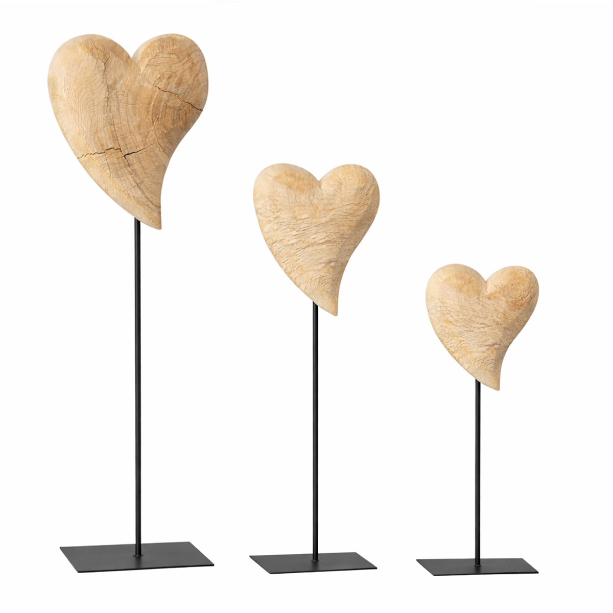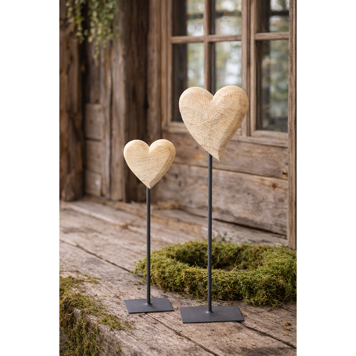 Die natürlich belassene Oberfläche zeigt jede Kerbe und jede Maserung und macht jedes Herz zu einem echten Unikat.