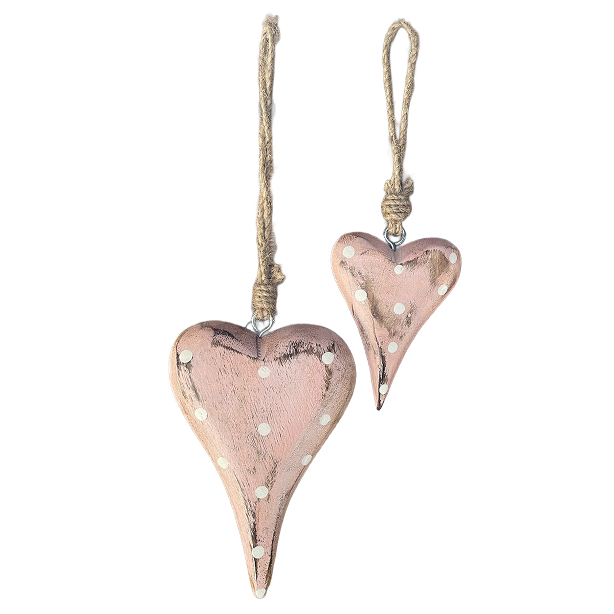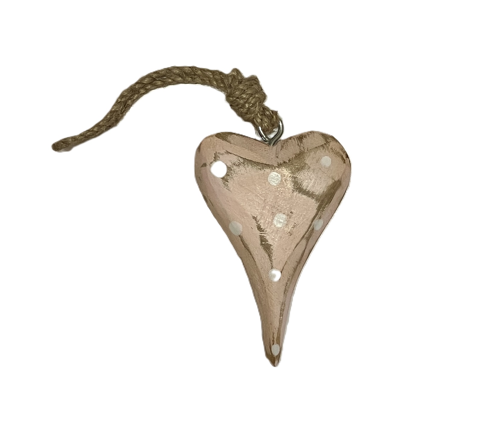 Deko Herz rosa used look, Holzherz unfinish mit weiße Punkte, 10cm