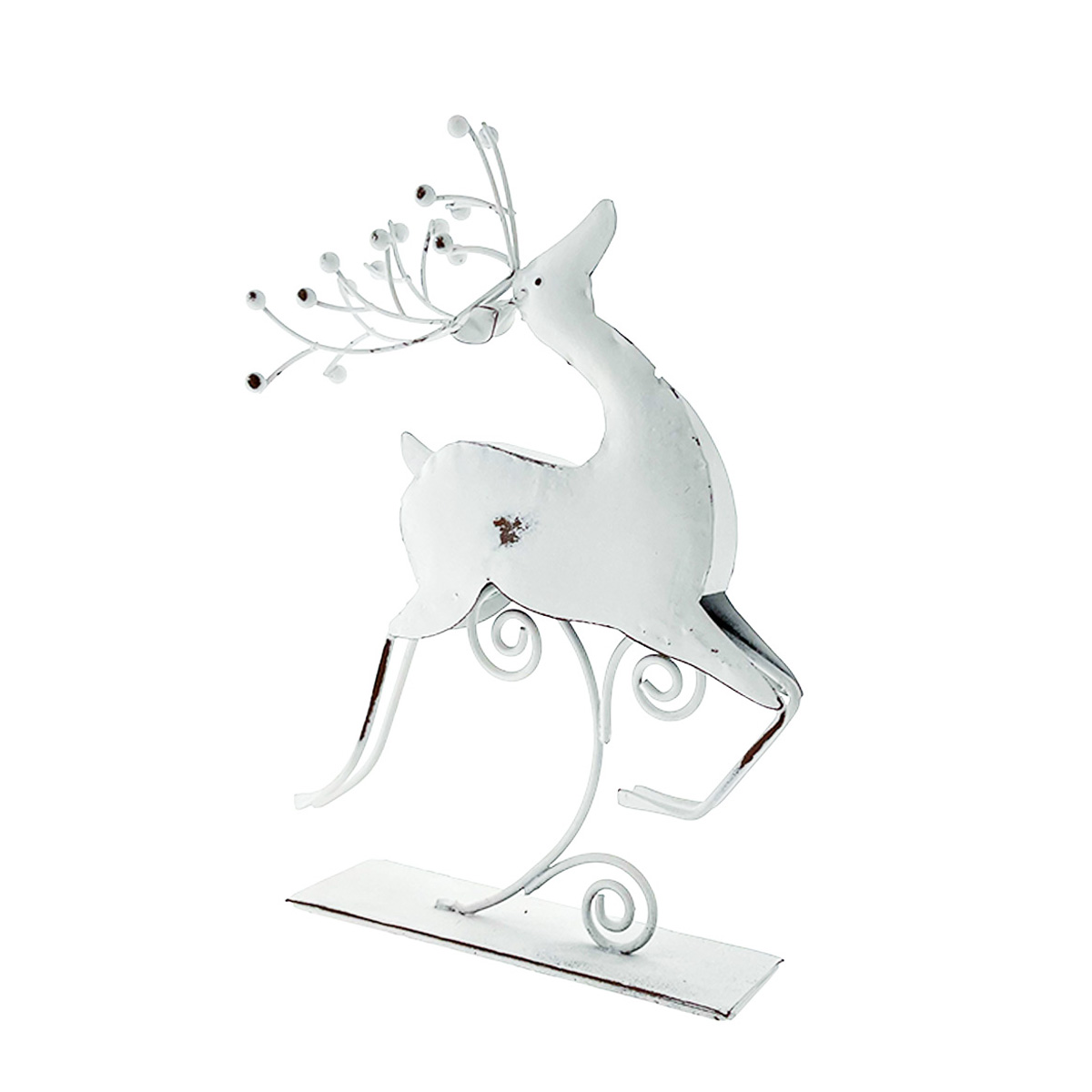 Produktinformationen "Deko Hirsch, filigraner Metallhirsch weiß unfinish, used look, 22x17cm, auf Metallfuß"