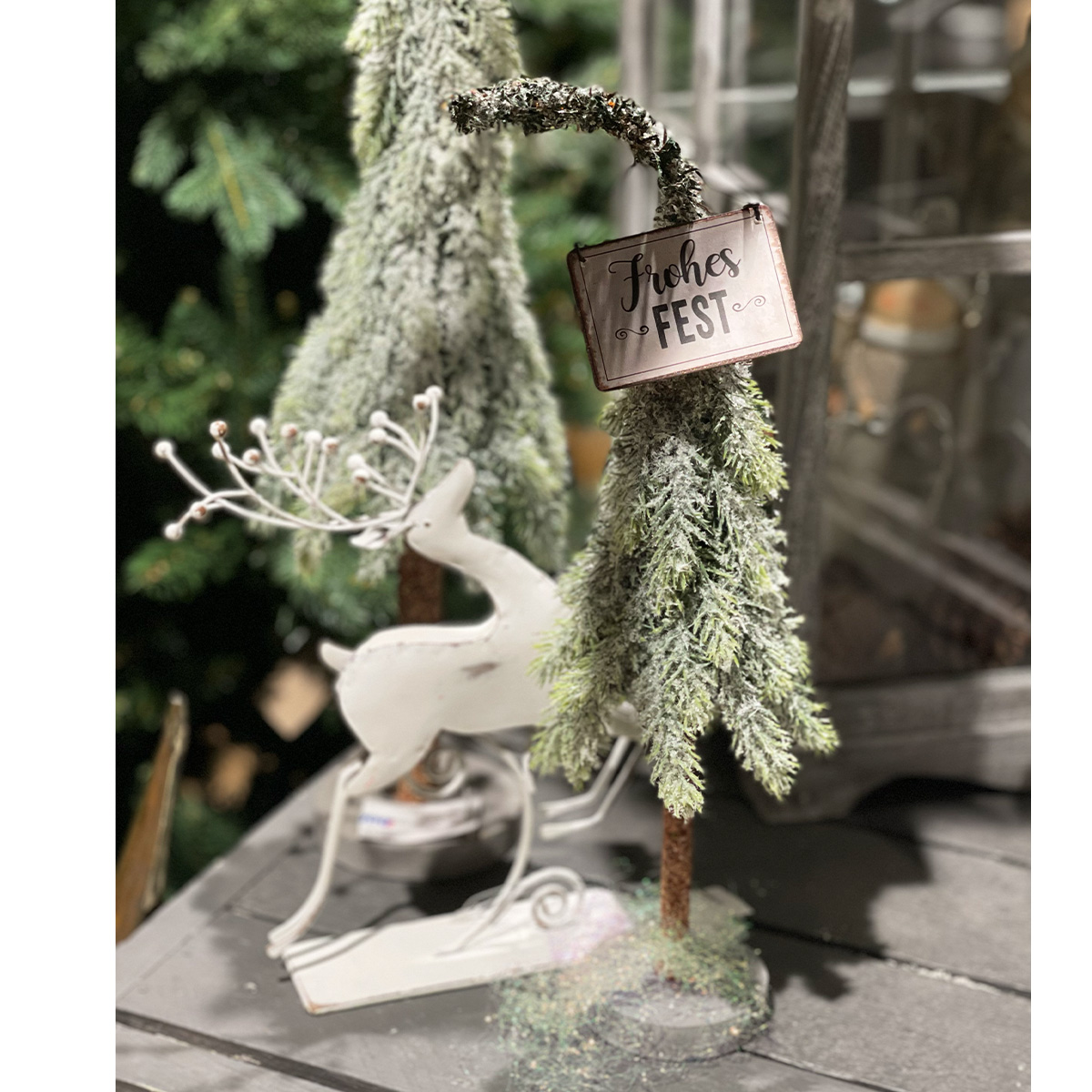 Herstellerinformationen zu "Deko Hirsch, filigraner Metallhirsch weiß unfinish, used look, 22x17cm, auf Metallfuß"