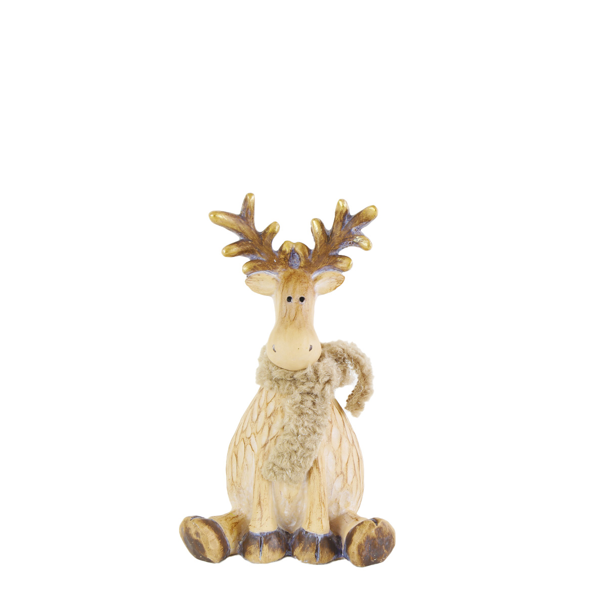 Produktinformationen "Deko Hirsch Winter, Hirsch in Holzoptik mit Schal, 13x21cm, Polyresin"