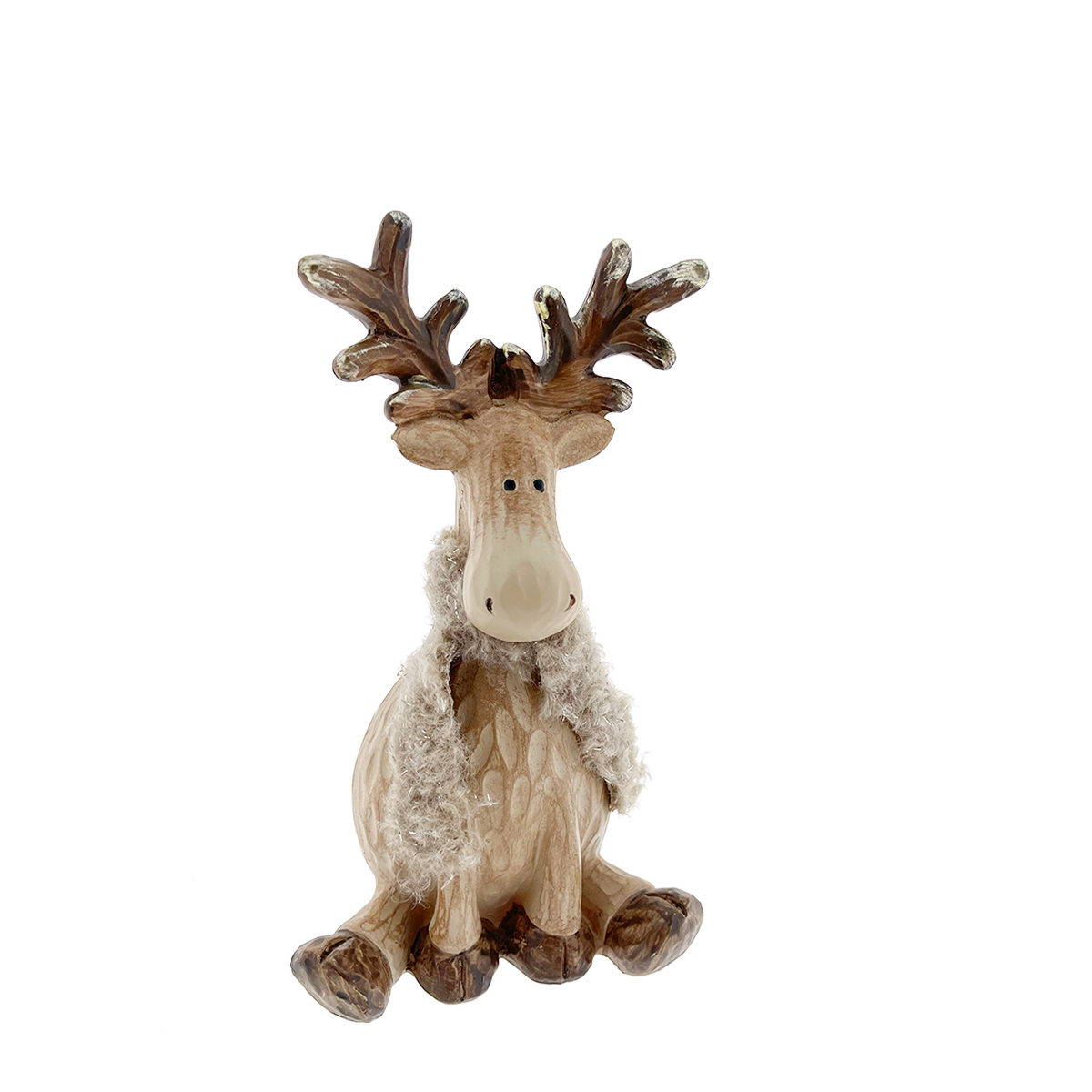 Deko Hirsch Winter, Hirsch in Holzoptik mit Schal, 13x21cm, Polyresin
