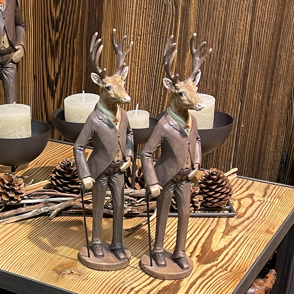 Deko Hirsch Mr Deer Antik, stattlicher Hirsch im Frack und Gehstock, 32cm