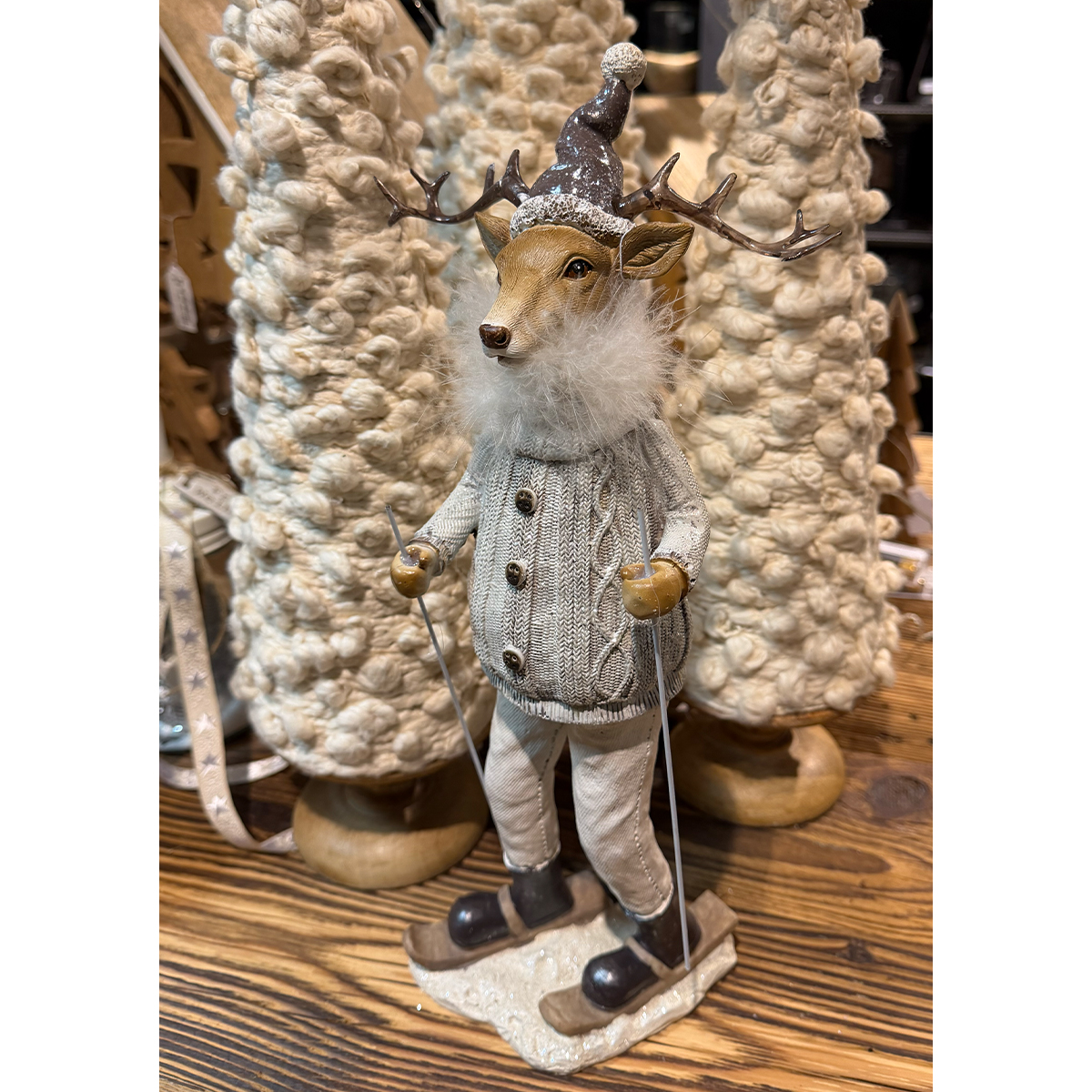 Produktinformationen "Deko Hirsch Skifahrer creme-braun, Polyhirsch auf Ski"