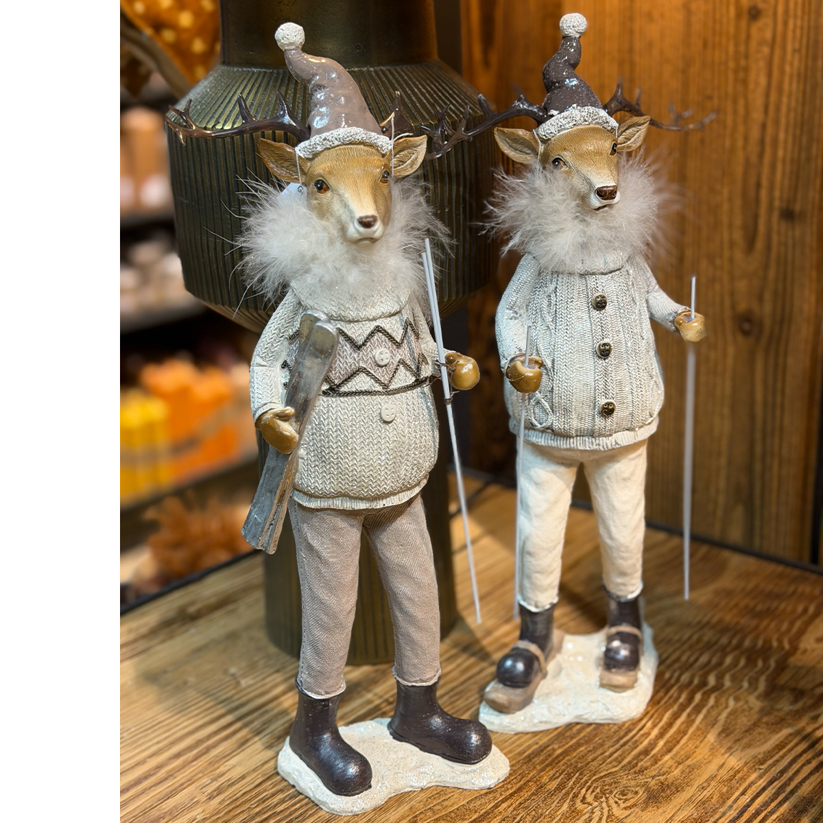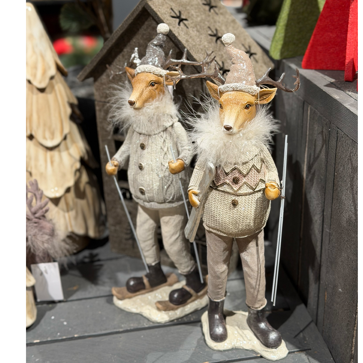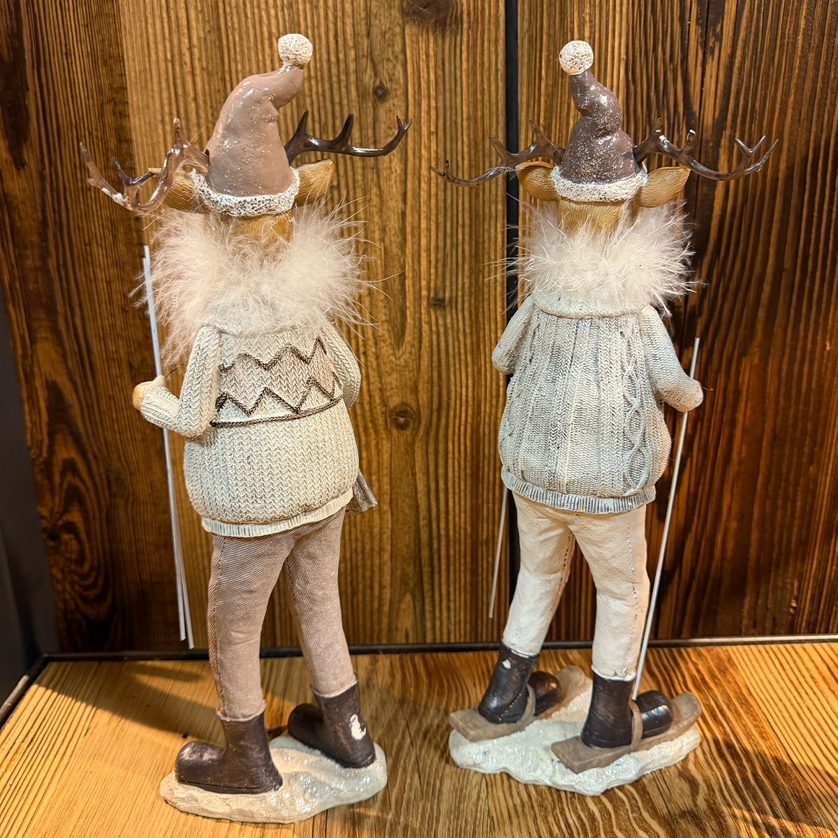 Produktinformationen "Deko Hirsch Skifahrer creme-braun, Polyhirsch mit geschulterten Ski"