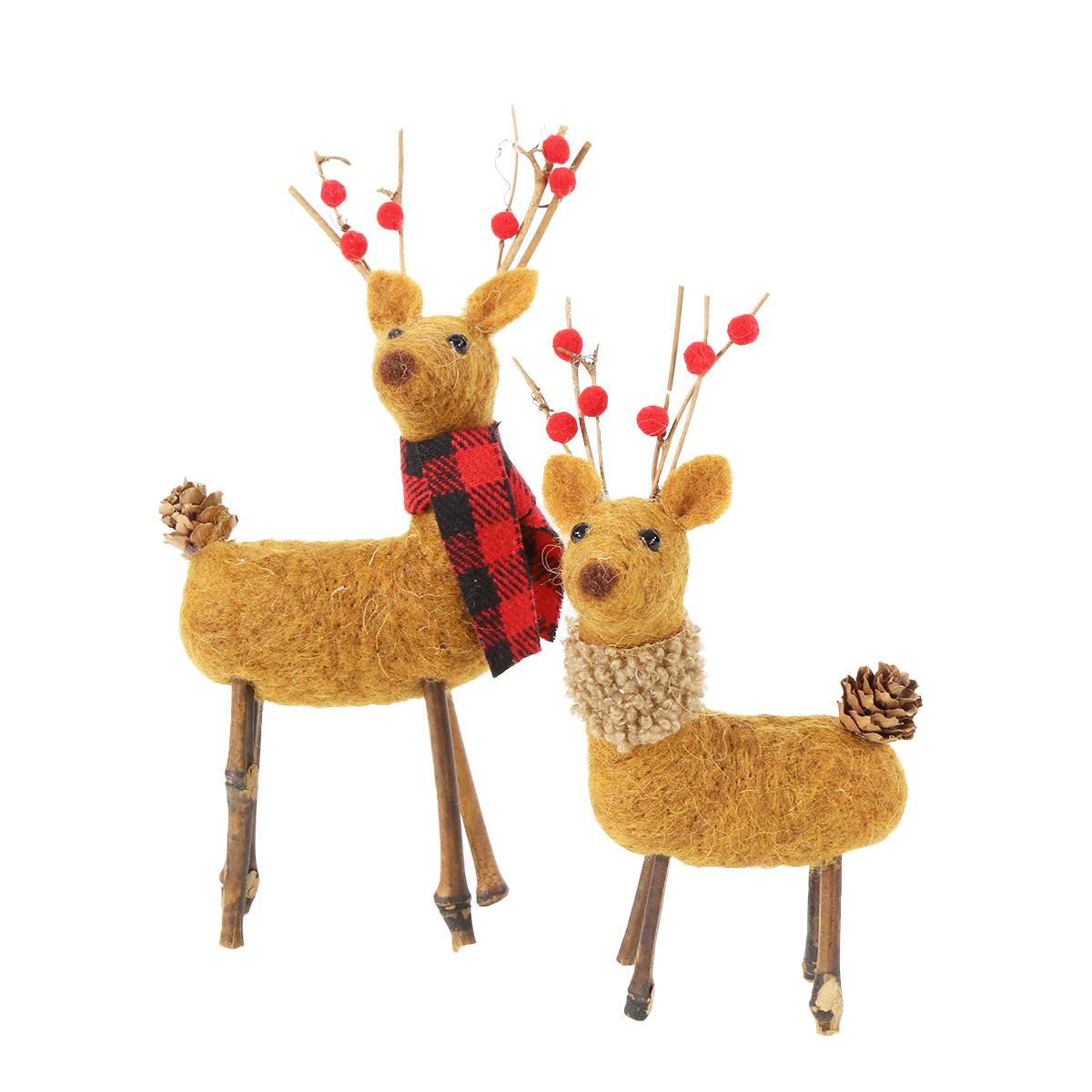 Produktinformationen "Deko Hirsche, Filzhirsche mit Schal, 17+20cm, 2-fach sort, Set/2"