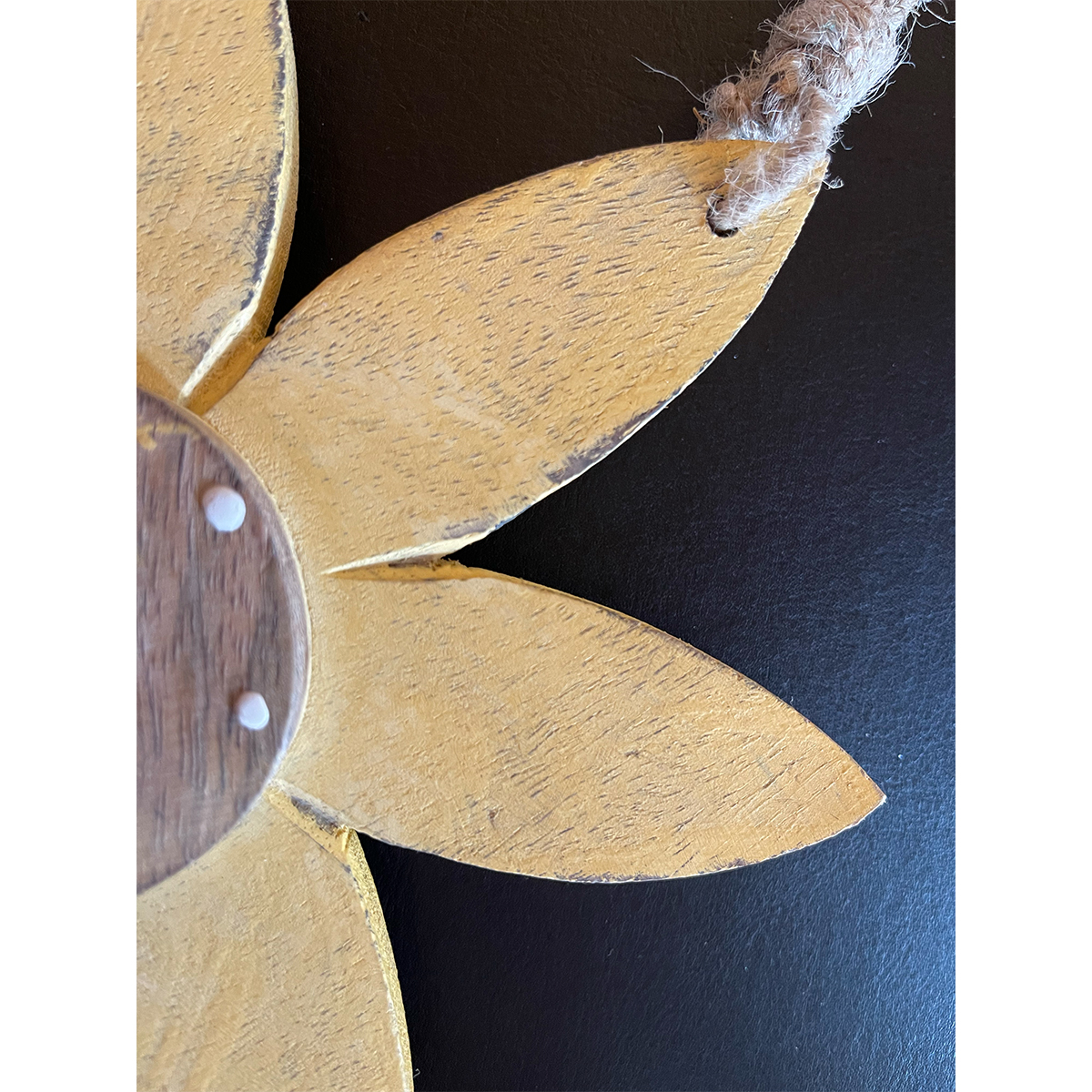 Deko Holzblume gelb mit Punkte, Sonnenblume aus Holz zum Hängen, beidseitige Holzblüte