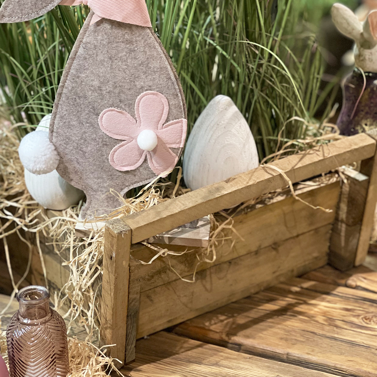 Deko Holzkiste Naturholz, Pflanzkorb mit 4 Unterteilungen und Griffe, 35x34cm