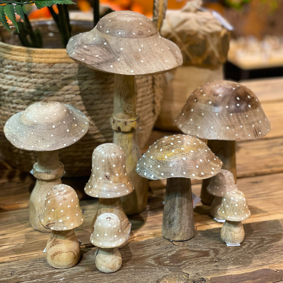 Deko Holzpilz, Fliegenpilz natur, breite Kappe, 15x13cm