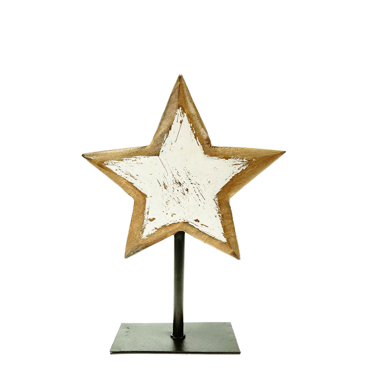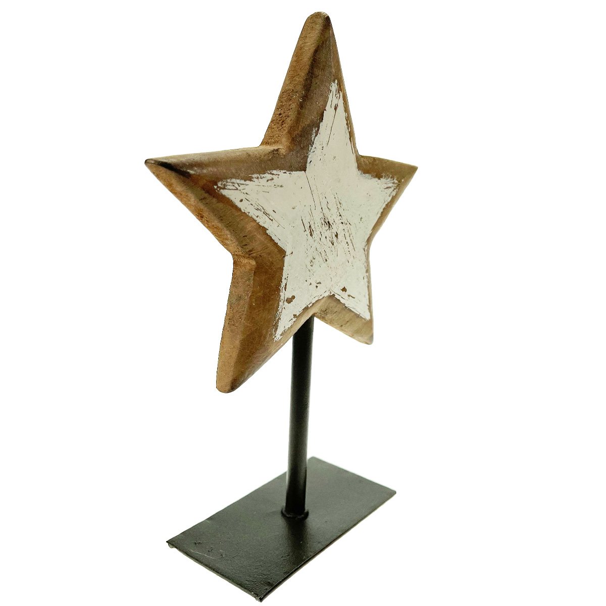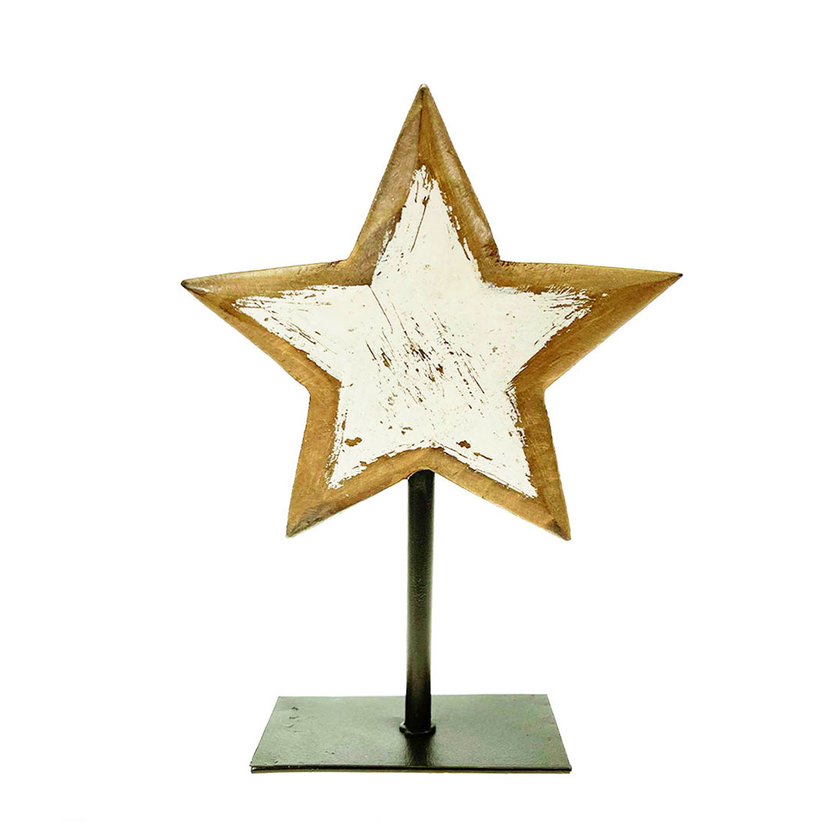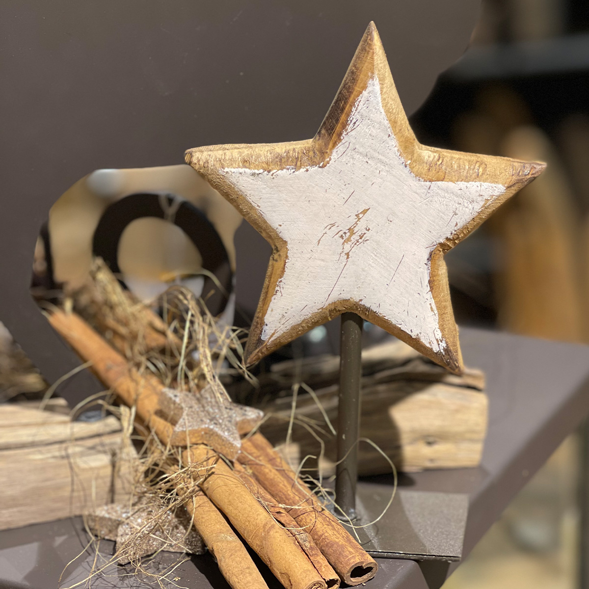 Deko Holzstern, Stern used look unfinished auf Metallständer, natur-creme, 19cm