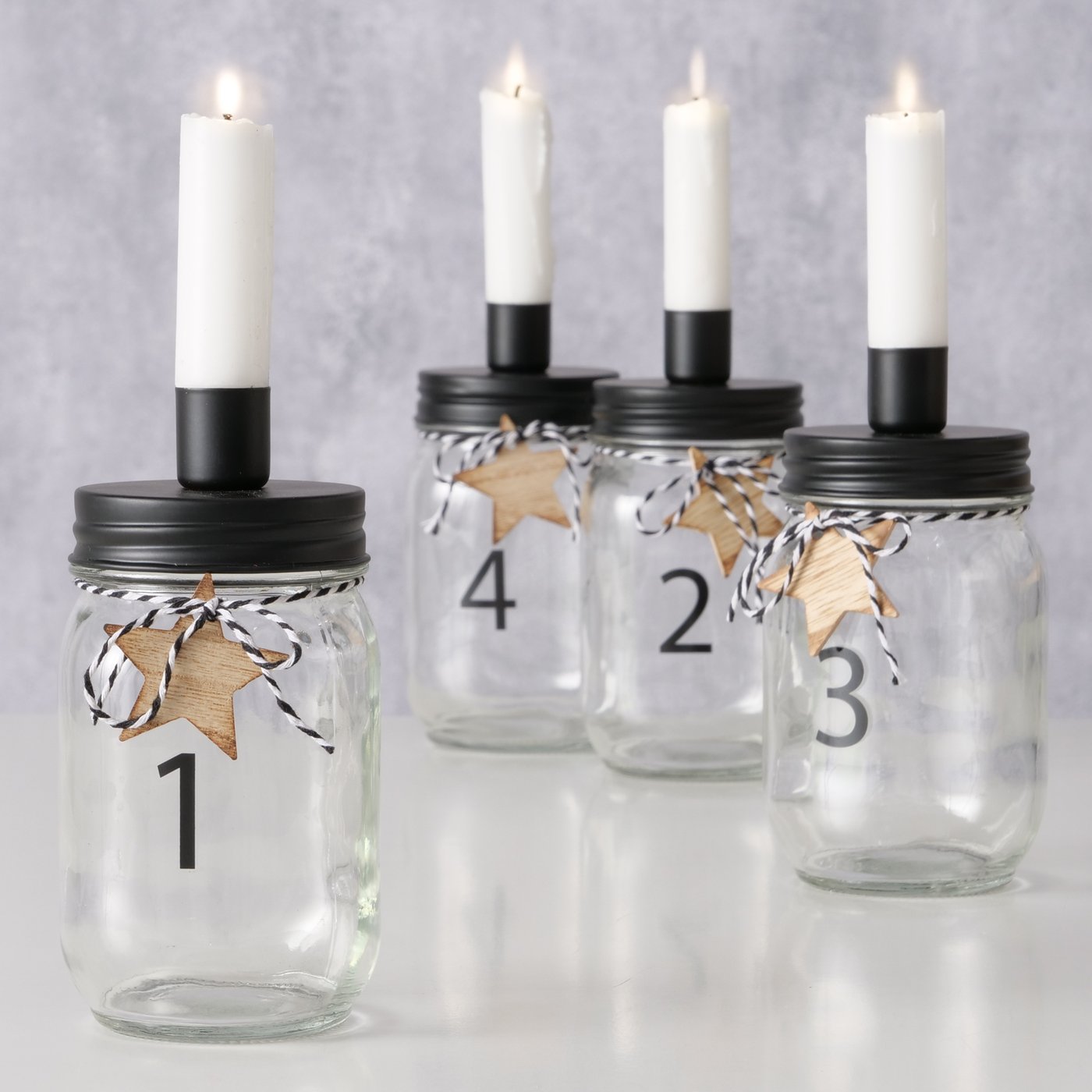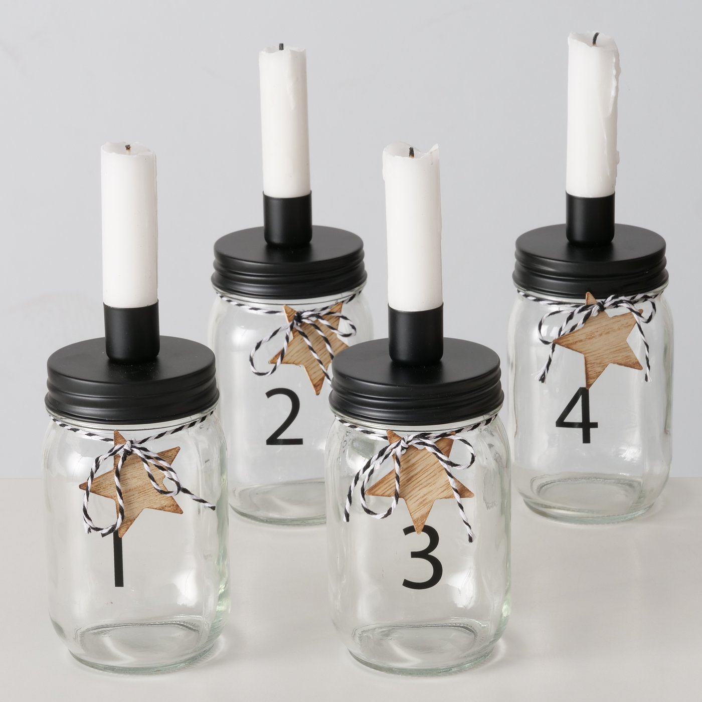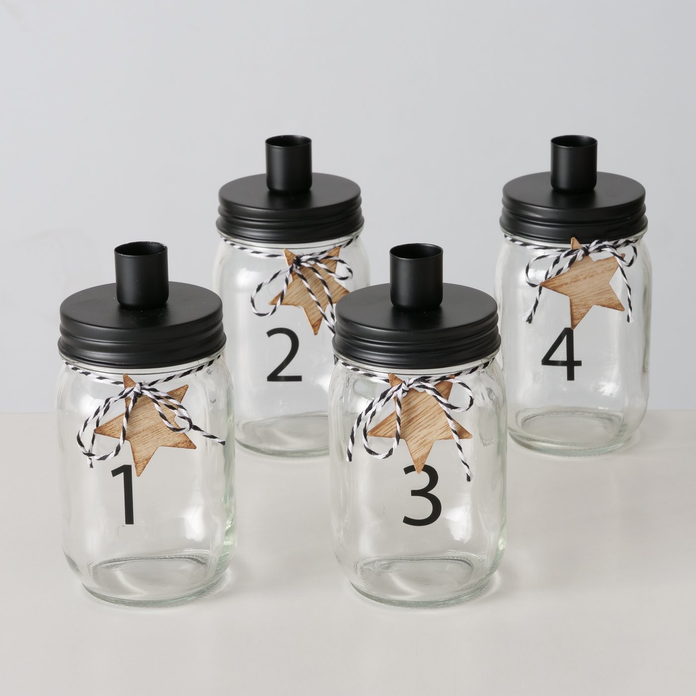 Deko Kerzengläser Advent, Kerzenhalter mit Zahlen 1-4 und Holzstern, Boltze Home Collections