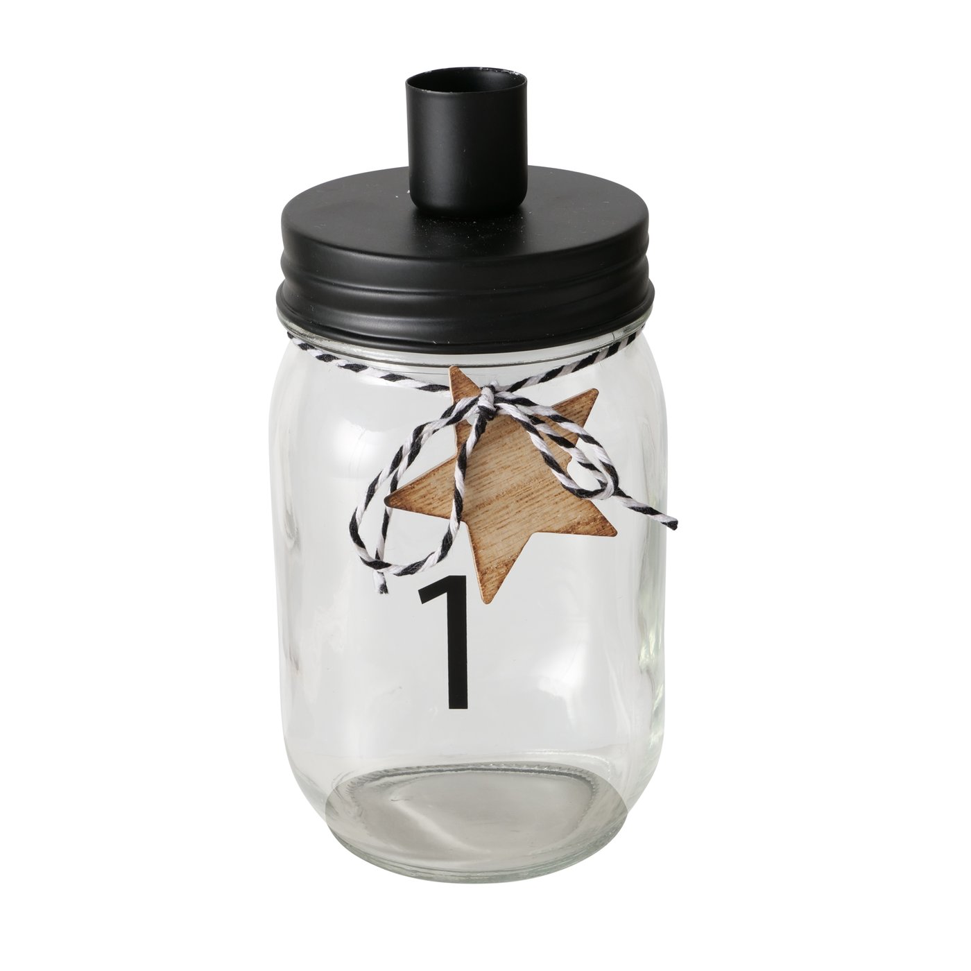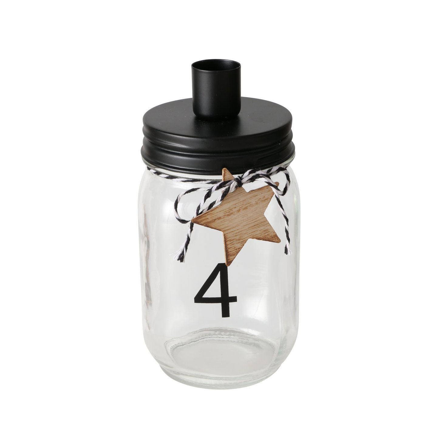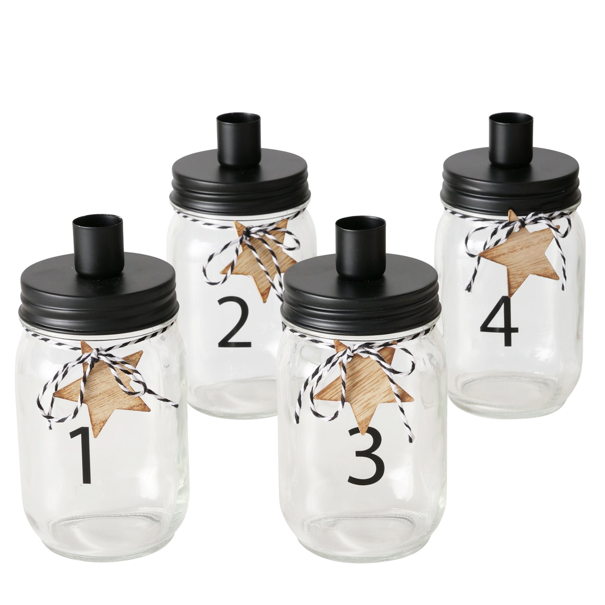 Deko Kerzengläser Advent, Kerzenhalter mit Zahlen 1-4 und Holzstern, Boltze Home Collections