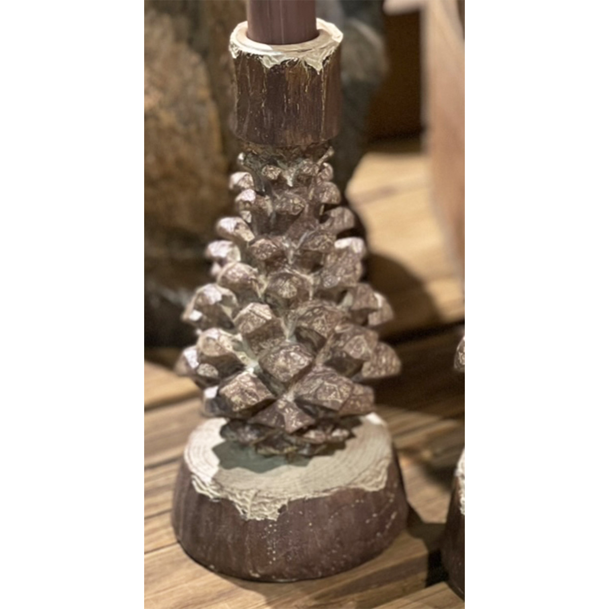 Deko Kerzenhalter Kiefernzapfen, Kerzenständer in Zapfenform, braun-grau used look, 18cm