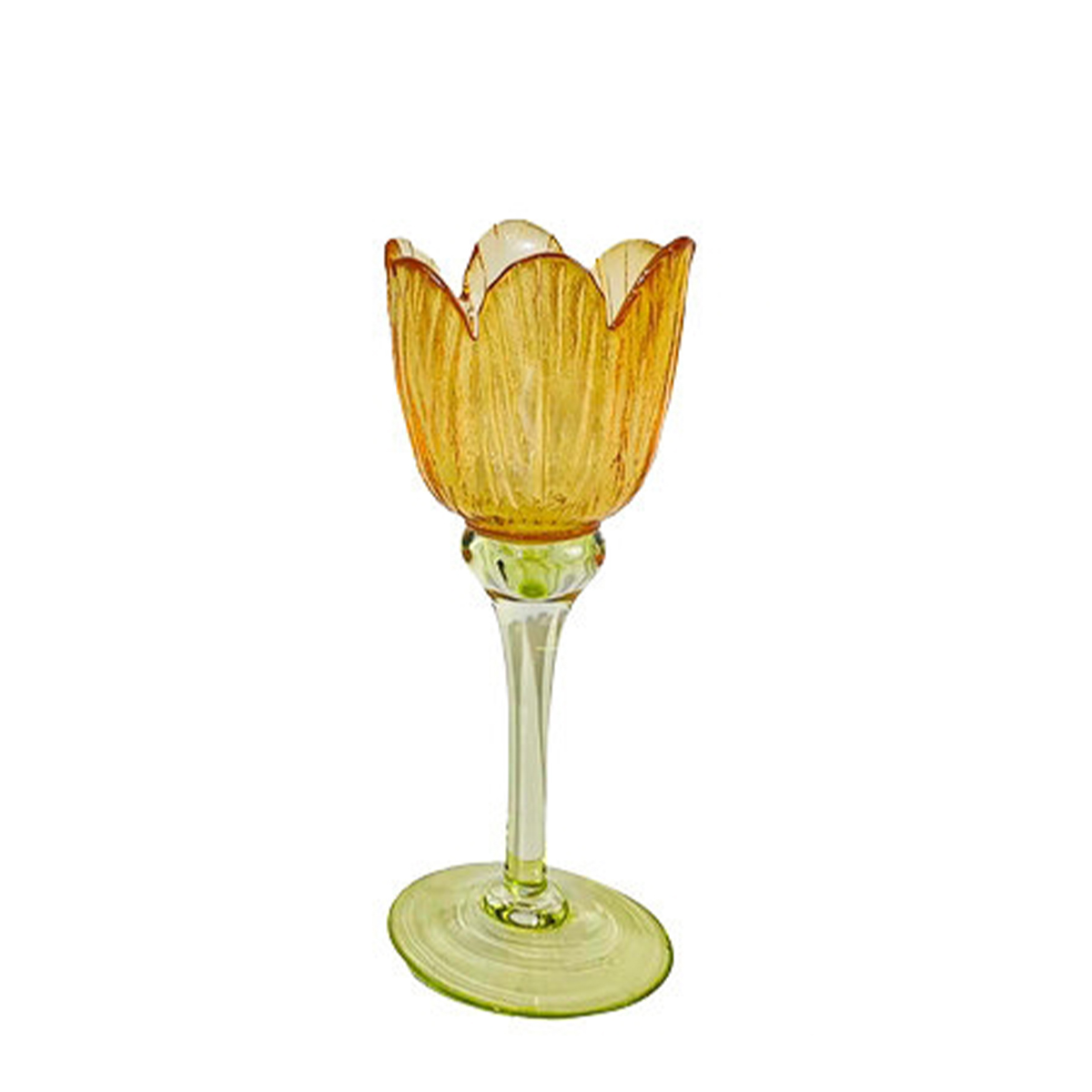 Deko Kerzenständer Blume oangegelb, Tulpenglas hoch, 19cm