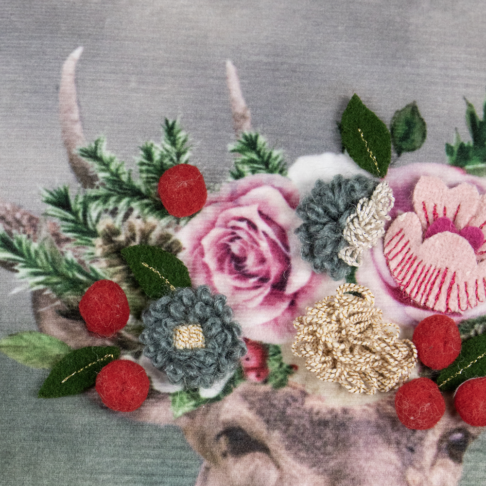 Deko Kissen Hirsch Fleury, Rotwild mit Blumen, 45x45cm, Mars & More