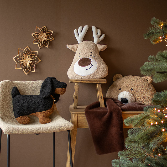 Deko Kissen Hund, Plüschkissen Dackel schwarz-braun