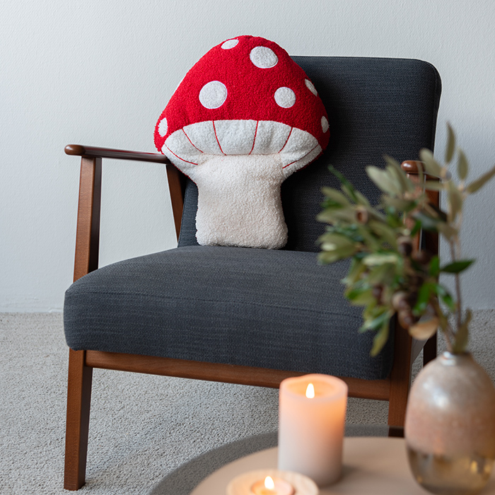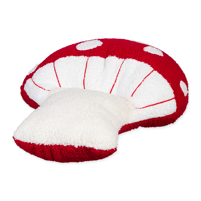 Deko Kissen Pilz, Fliegenpilz Teddystoff, weiß-rot, 35x45cm, Halbach