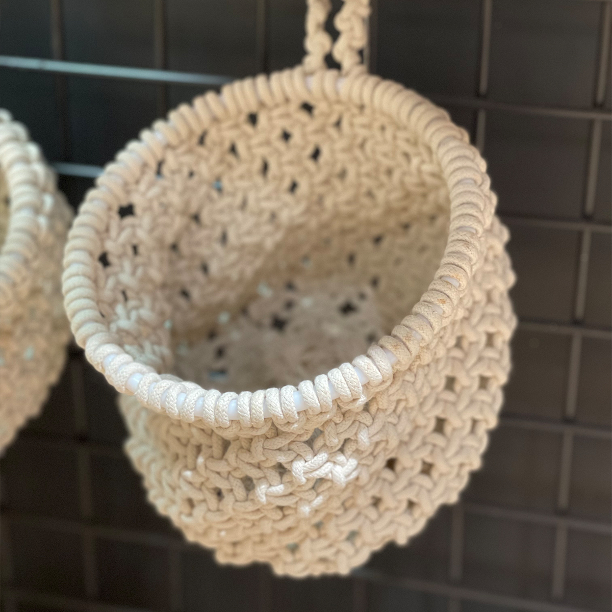 Deko Korb Boho gehäckelt, Makramee-Korb mit Schlaufe, 16x13cm